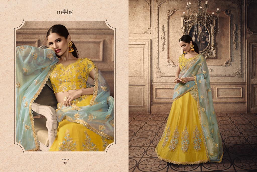 Buy Online Vivaana By Maisha Maskeen Series 20001 To 20007 Designer Occasion Wear Lehngas Wholesale Supplier Gujarat 7 Pcs of Full Catalogue at Wholesale Price. Looking for Vivaana By Maisha Maskeen Series 20001 To 20007 Designer Occasion Wear Lehngas Wholesale Supplier Gujarat Full Catalouge at Best Price? Buy Now Vivaana By Maisha Maskeen Series 20001 To 20007 Designer Occasion Wear Lehngas Wholesale Supplier Gujarat at Wholesale Rate of Rs 34965 with Total 7 Pcs from authroized dealer and supplier of MAISHA Brand. Cost of Each piece is just only Rs 4995 which is very low and affordable price to resale the product in your retail store ,This is Surat based Wholesale Supplier & Dealer of MAISHA Brand. Click on Brand name to Know more about MAISHA Brand's products.Call or Whatsapp on 9898838984 for booking or enquiry
