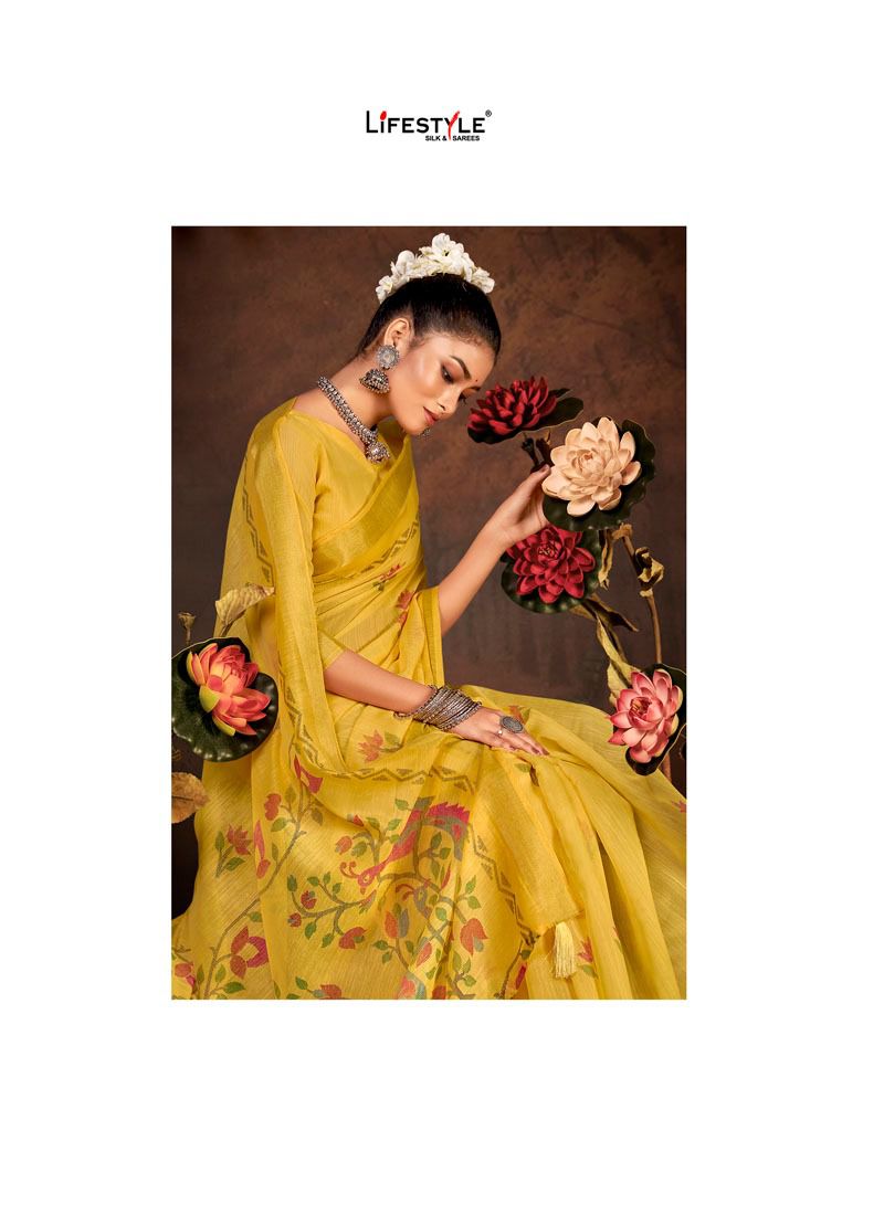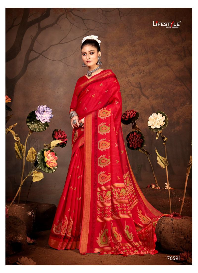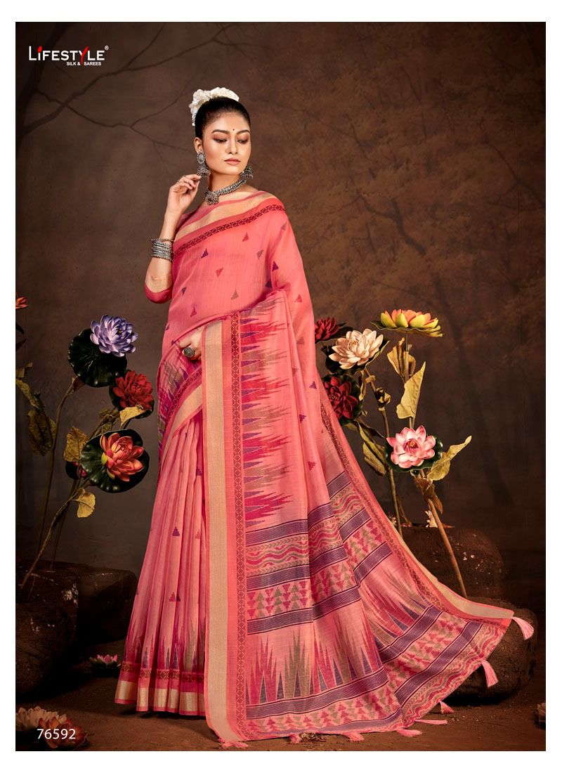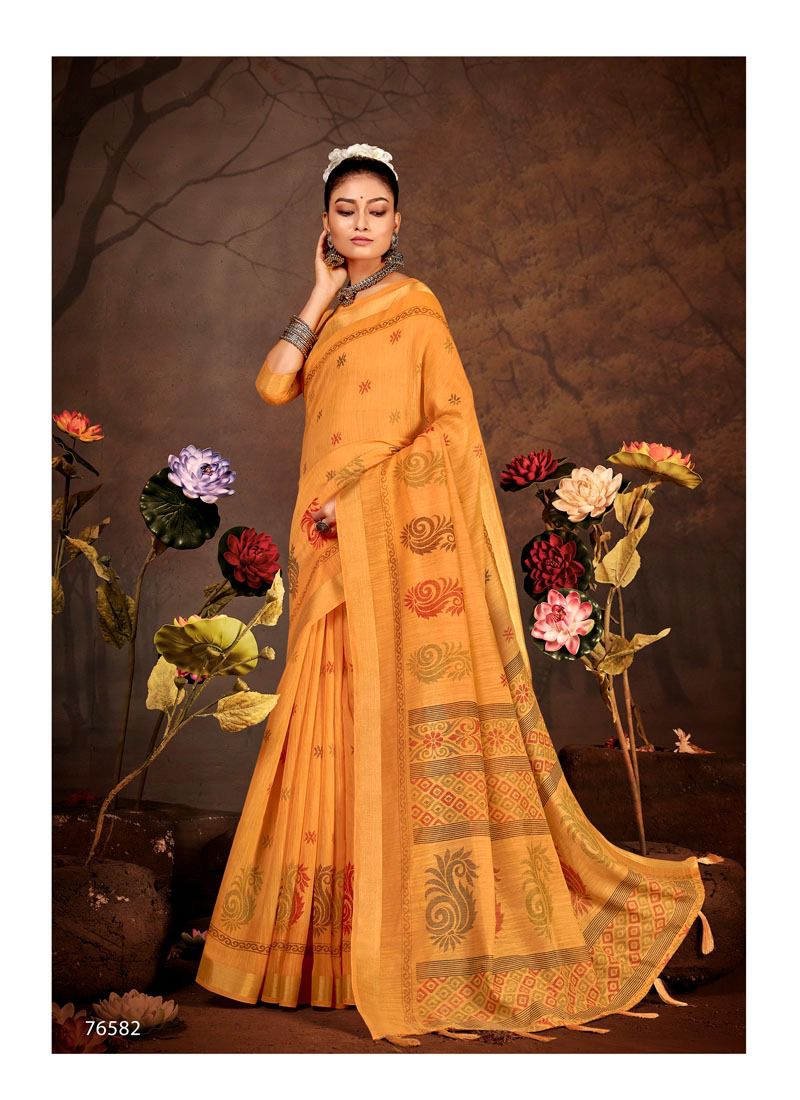 Brand = *LIFESTYLE* Catalog :- *VIVANTA COTTON* Volume :- 5 Fabric :- *LINEN FANCY COTTON PRINT* Packing :- BOX Price :- *510/- per PCÂ?s * Set to set. GST 5 Percent Extra Cut/Length :- 6.4 FANCY COTTON PRINT SAREE WITH JARI BORDER PACKING - IN THIS WEEK |