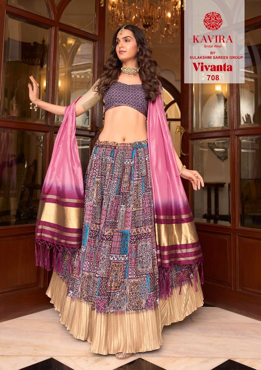 Vivanta Series 701 To 708 By Kavira Designer Satin Silk Lehenga Single And Set Dealer And Exporter Surat Gujarat