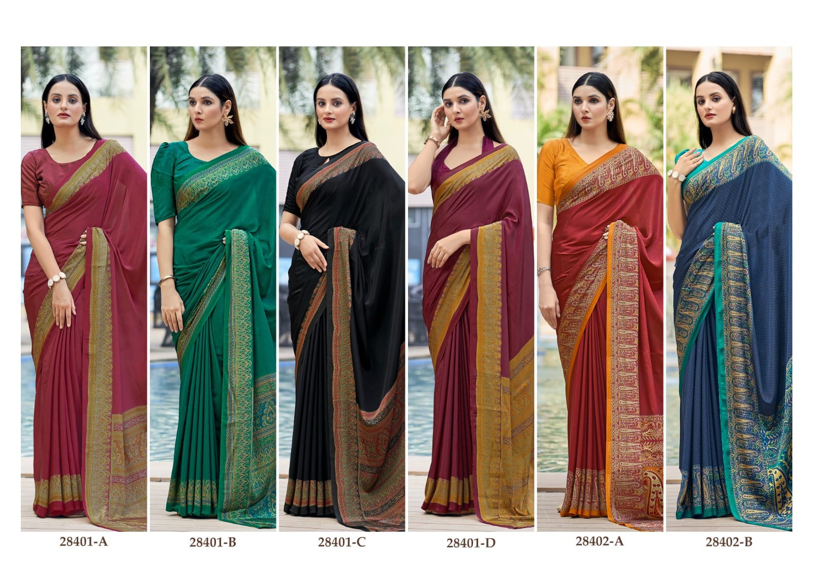 Hello, Ruchi Sarees Presents "VIVANTA SILK" 1. Folder - Vivanta Silk (27) 2. Pcs. - 12. 3. Fabric - Silk Crepe. 4. Packing - Setwise & Designwise 5. ?Rate- 606/- per pcs GST EXTRA Single available 100+single |