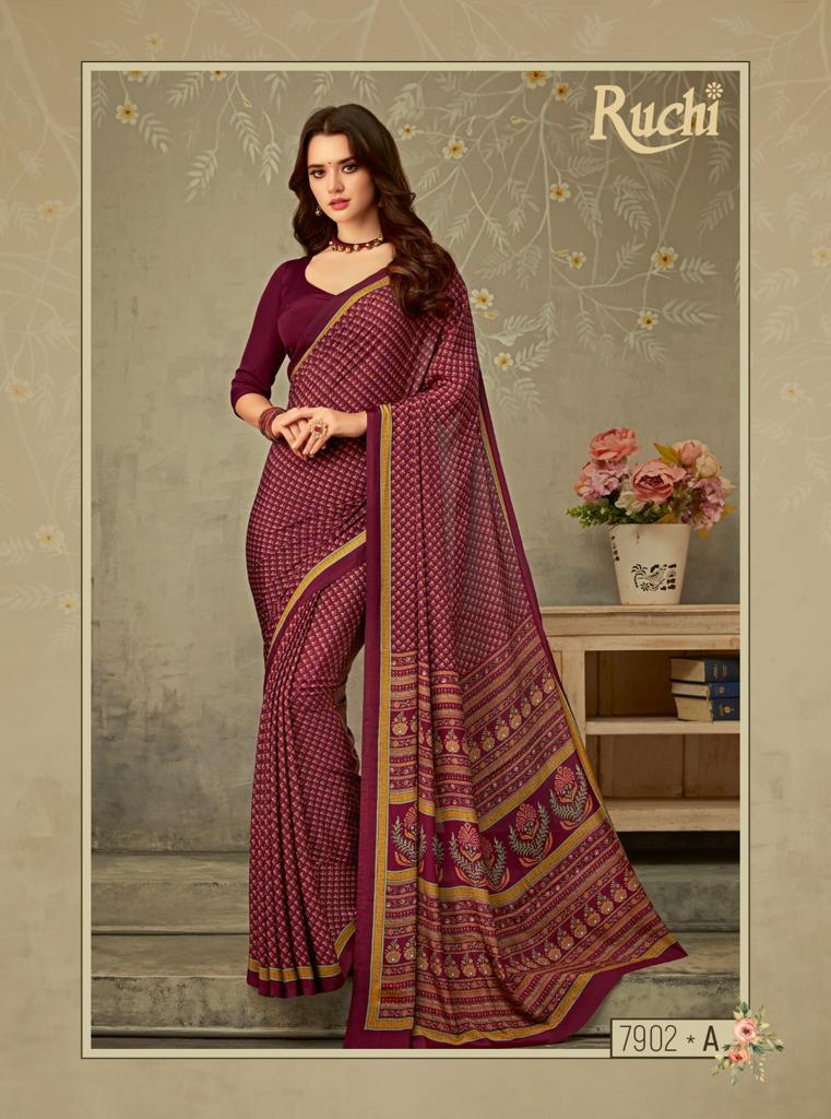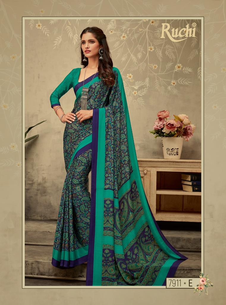 RUCHI SAREES CATALOG - VIVANTA SILK HIT - 09. PCS. - 12. FABRIC - SILK CREPE. Rate Â? 606/- per pcs Gst extra WEIGHT - 450 GRAMS (APPROX.) 100+Singles |