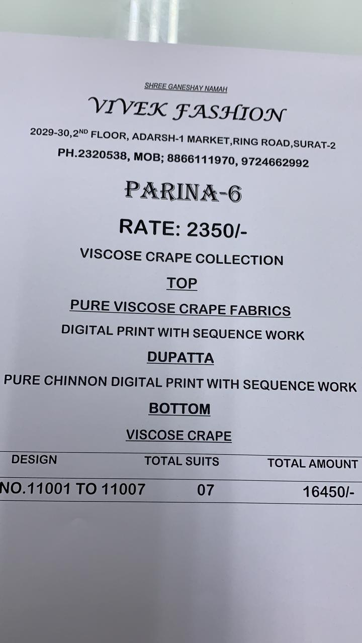 Check Vivek parina vol 6 Viscose crape collection with pure chinon digital prints dupatta Price - 2350/- |