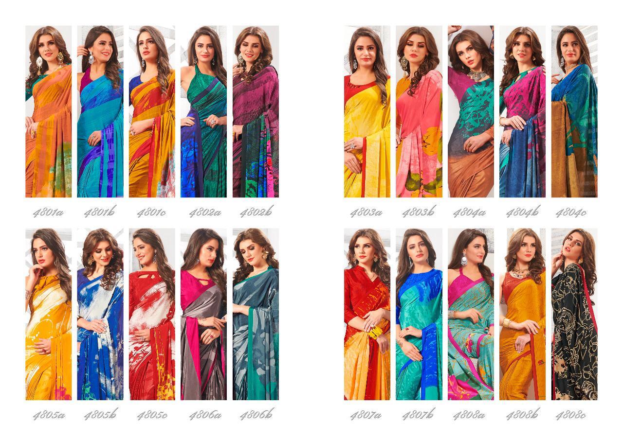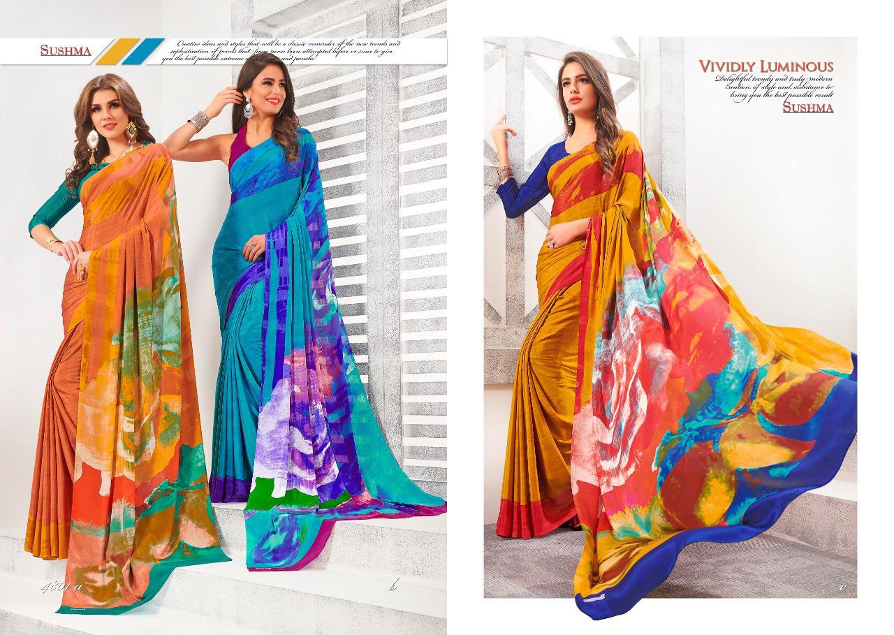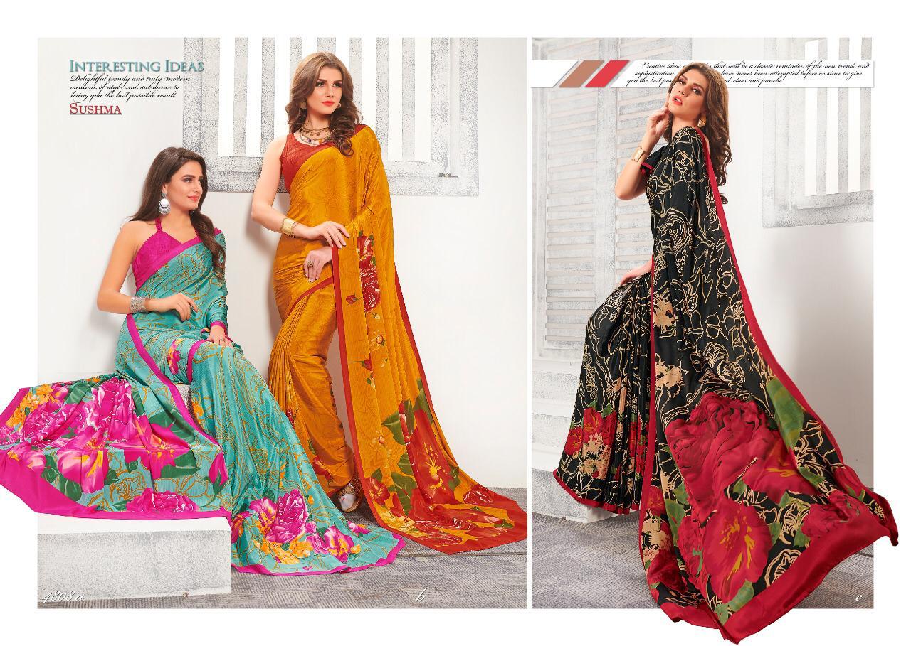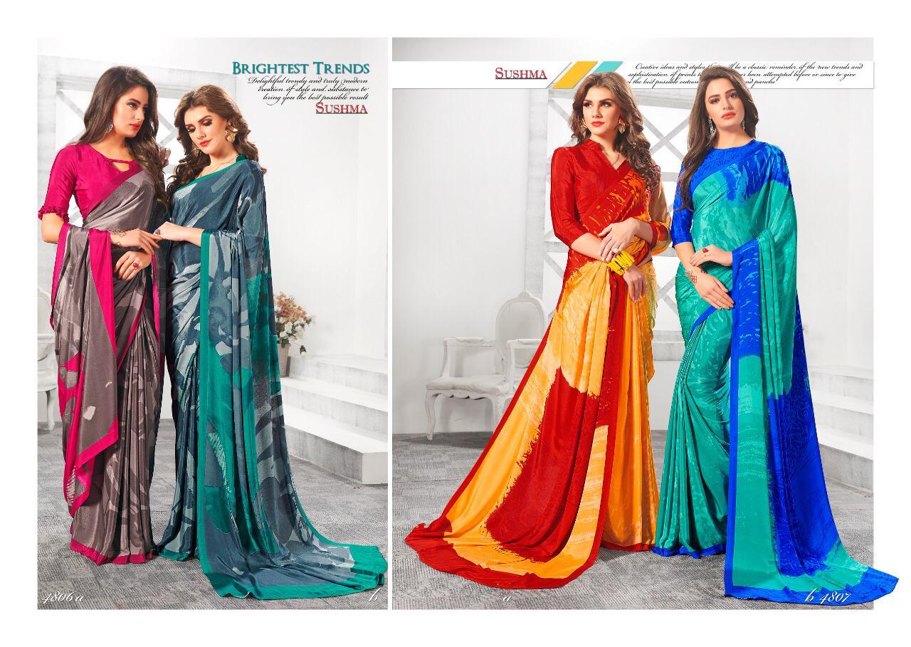 Buy Online Vogue By Sushma 4801 Series Fancy Digital Printed Crepe Saree Collection Wholesale Deaer Surat 20 Pcs of Full Catalogue at Wholesale Price. Looking for Vogue By Sushma 4801 Series Fancy Digital Printed Crepe Saree Collection Wholesale Deaer Surat Full Catalouge at Best Price? Buy Now Vogue By Sushma 4801 Series Fancy Digital Printed Crepe Saree Collection Wholesale Deaer Surat at Wholesale Rate of Rs 0 with Total 20 Pcs from authroized dealer and supplier of SUSHMA Brand. Cost of Each piece is just only Rs 0 which is very low and affordable price to resale the product in your retail store ,This is Surat based Wholesale Supplier & Dealer of SUSHMA Brand. Click on Brand name to Know more about SUSHMA Brand's products.Call or Whatsapp on 9898838984 for booking or enquiry