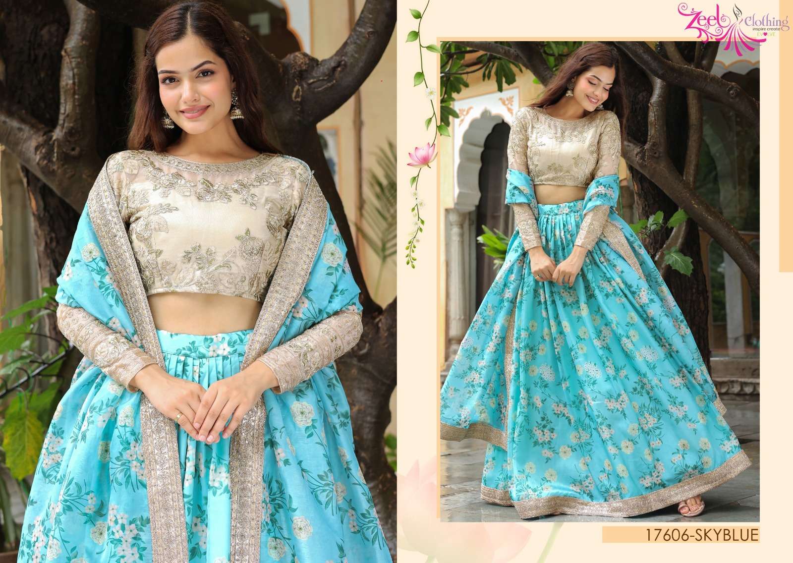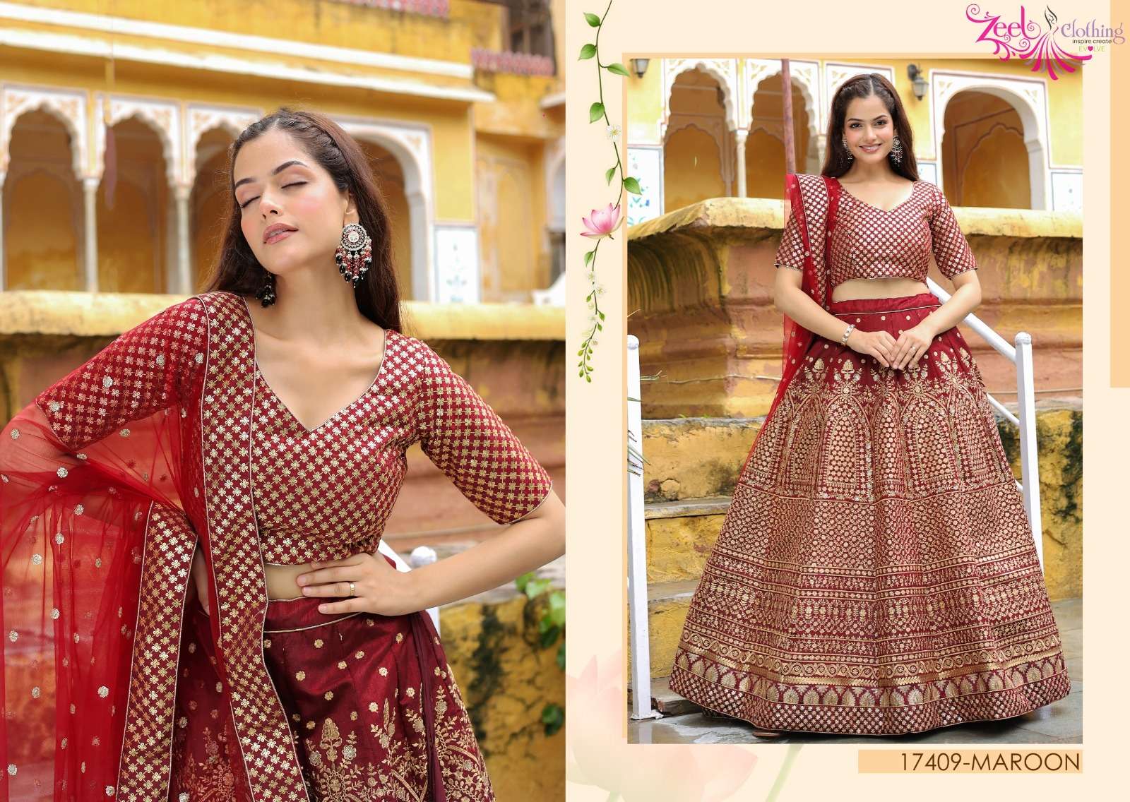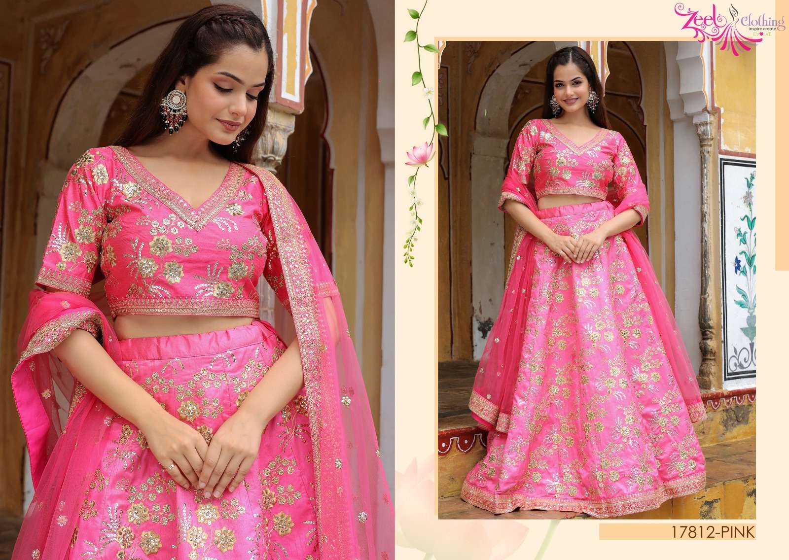 BRAND - ZEEL CLOTHING PRESENTS NEW CATALOG OF LEHENGA CHOLI: VOL-29 ALL HIT DESIGNS FABRICS & PRICE LIST ATTACHED SKU Rate 15050-Red ==> 1700/- 15058-Lavender ==> 2600/- 15088-Blue ==> 2400/- 16012-SkyBlue ==> 3500/- 17055-Peach ==> 3000/- 17313-Pink ==> 2850/- 17409-Maroon ==> 2750/- 17512-White ==> 2900/- 17515-Blue ==> 2900/- 17606 - Sky Blue ==> 2350/- 17707-Navy Blue ==> 4000/- 17812-Pink ==> 3000/- 17816-Neon ==> 3000/- Total 13 SKUs GST EXTRA SINGLE AVAILABLE KINDLY UPLOAD ASAP |