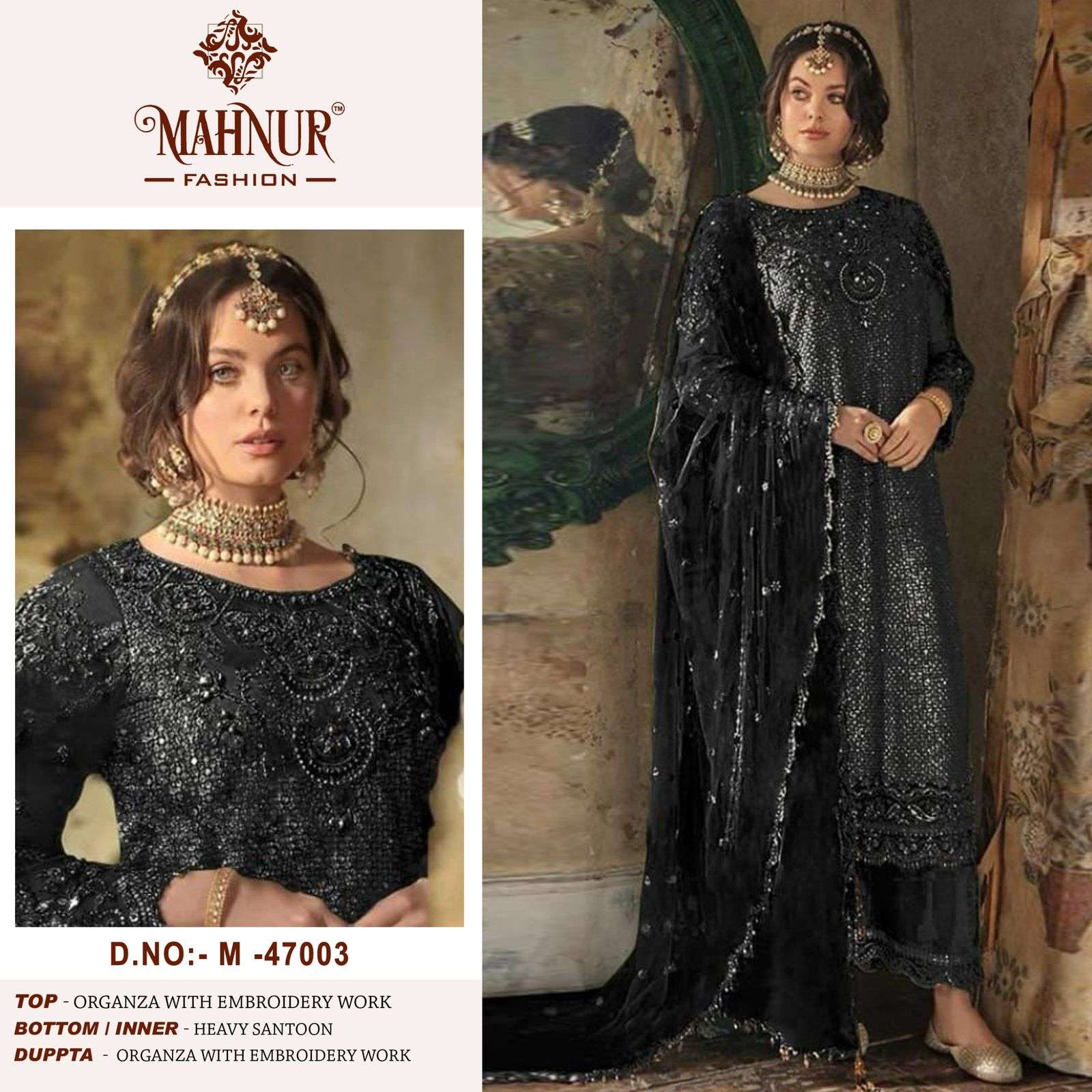 Buy Online VOL 47 D N 47001 47002 47003 by MAHNUR FASHION Havey organza beautiful Pakistani suit collection manufacturer surat 3 Pcs of Full Catalogue at Wholesale Price. Looking for VOL 47 D N 47001 47002 47003 by MAHNUR FASHION Havey organza beautiful Pakistani suit collection manufacturer surat Full Catalouge at Best Price? Buy Now VOL 47 D N 47001 47002 47003 by MAHNUR FASHION Havey organza beautiful Pakistani suit collection manufacturer surat at Wholesale Rate of Rs 3897 with Total 3 Pcs from authroized dealer and supplier of Mahnur Brand. Cost of Each piece is just only Rs 1299 which is very low and affordable price to resale the product in your retail store ,This is Surat based Wholesale Supplier & Dealer of Mahnur Brand. Click on Brand name to Know more about Mahnur Brand's products.Call or Whatsapp on 9898838984 for booking or enquiry