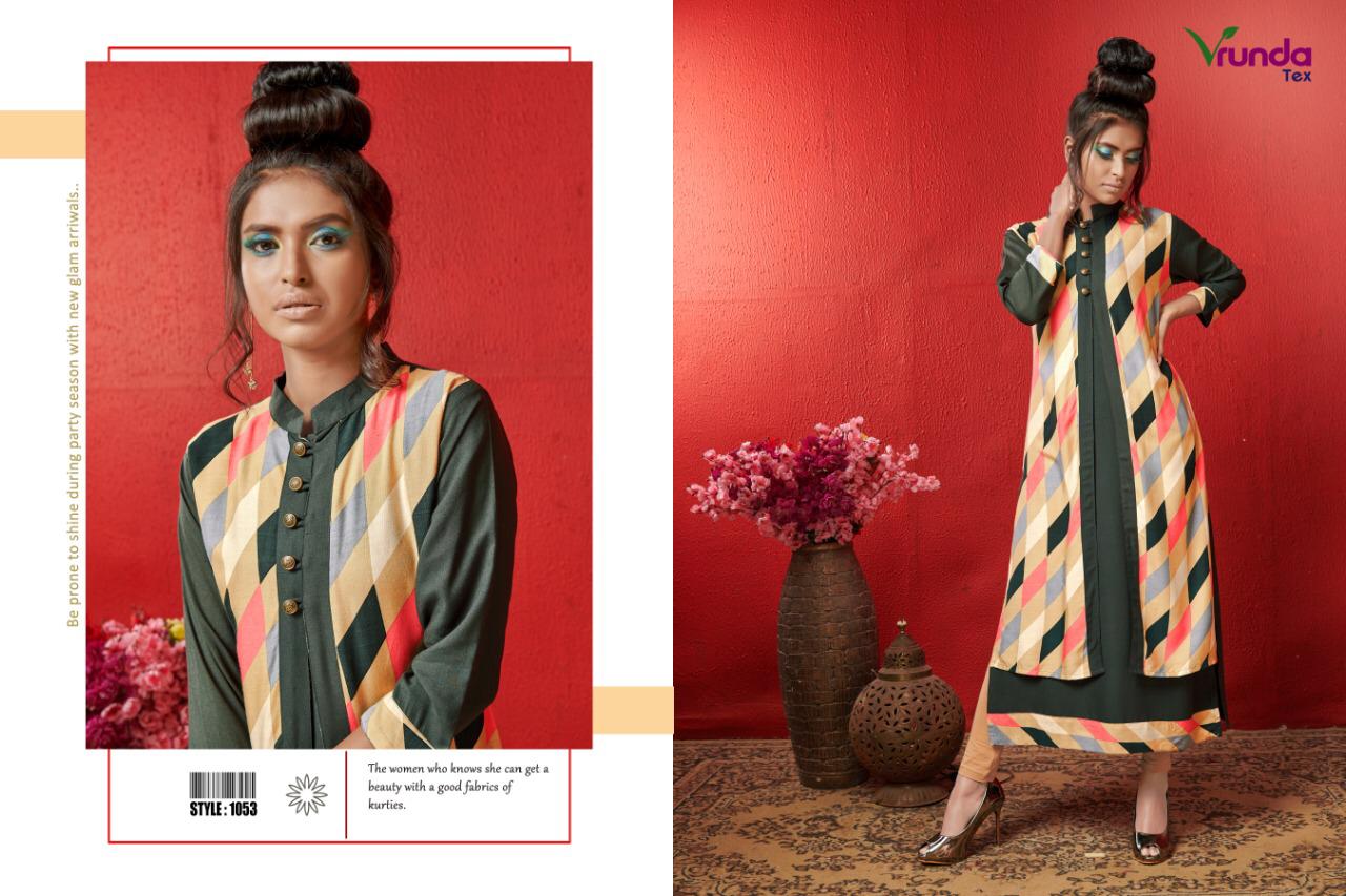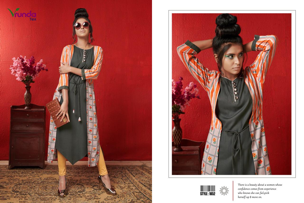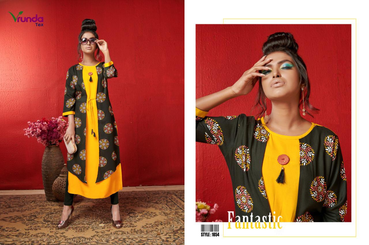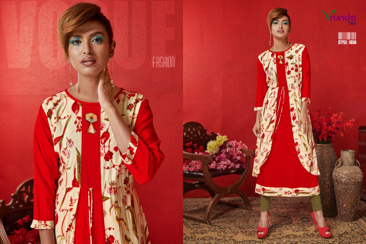 Volcano By Vrunda Tex 1051 Series Fancy Heavy Reyon Printed Kurti Collection Wholesaler Surat