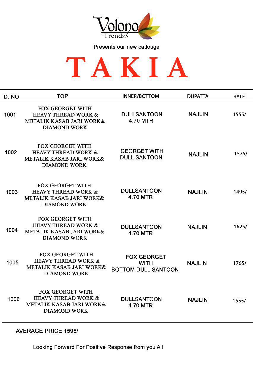 Buy Online Volono Trendz Takia 1001 Series Designer Gown Collection 6 Pcs of Full Catalogue at Wholesale Price. Looking for Volono Trendz Takia 1001 Series Designer Gown Collection Full Catalouge at Best Price? Buy Now Volono Trendz Takia 1001 Series Designer Gown Collection at Wholesale Rate of Rs 9570 with Total 6 Pcs from authroized dealer and supplier of VOLONO TRENDZ Brand. Cost of Each piece is just only Rs 1595 which is very low and affordable price to resale the product in your retail store ,This is Surat based Wholesale Supplier & Dealer of VOLONO TRENDZ Brand. Click on Brand name to Know more about VOLONO TRENDZ Brand's products.Call or Whatsapp on 9898838984 for booking or enquiry