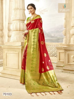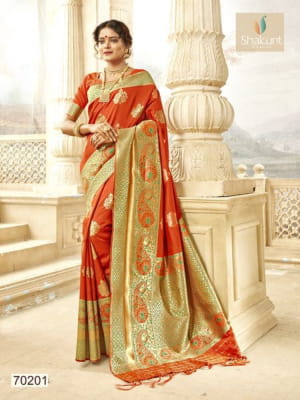 Buy Online Vrinda By Shakunt Series 70201 To 70206 Silk Designer Traditional Wear Sarees Wholesale Supplier Surat 6 Pcs of Full Catalogue at Wholesale Price. Looking for Vrinda By Shakunt Series 70201 To 70206 Silk Designer Traditional Wear Sarees Wholesale Supplier Surat Full Catalouge at Best Price? Buy Now Vrinda By Shakunt Series 70201 To 70206 Silk Designer Traditional Wear Sarees Wholesale Supplier Surat at Wholesale Rate of Rs 5550 with Total 6 Pcs from authroized dealer and supplier of Brand. Cost of Each piece is just only Rs 925 which is very low and affordable price to resale the product in your retail store ,This is Surat based Wholesale Supplier & Dealer of Brand. Click on Brand name to Know more about Brand's products.Call or Whatsapp on 9898838984 for booking or enquiry