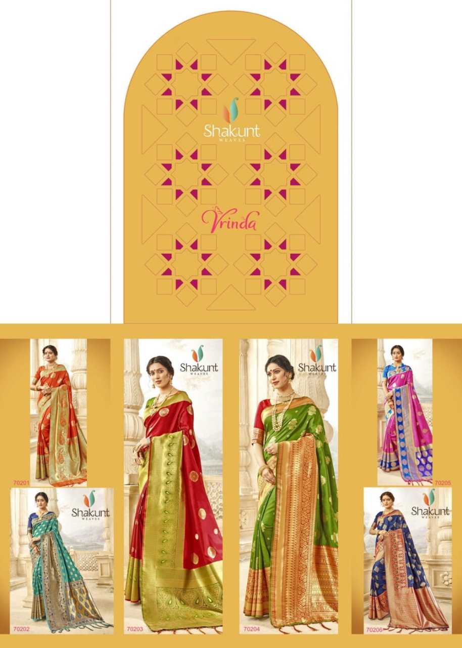Vrinda By Shakunt Series 70201 To 70206 Silk Designer Traditional Wear Sarees Wholesale Supplier Surat