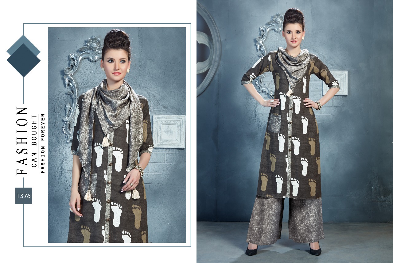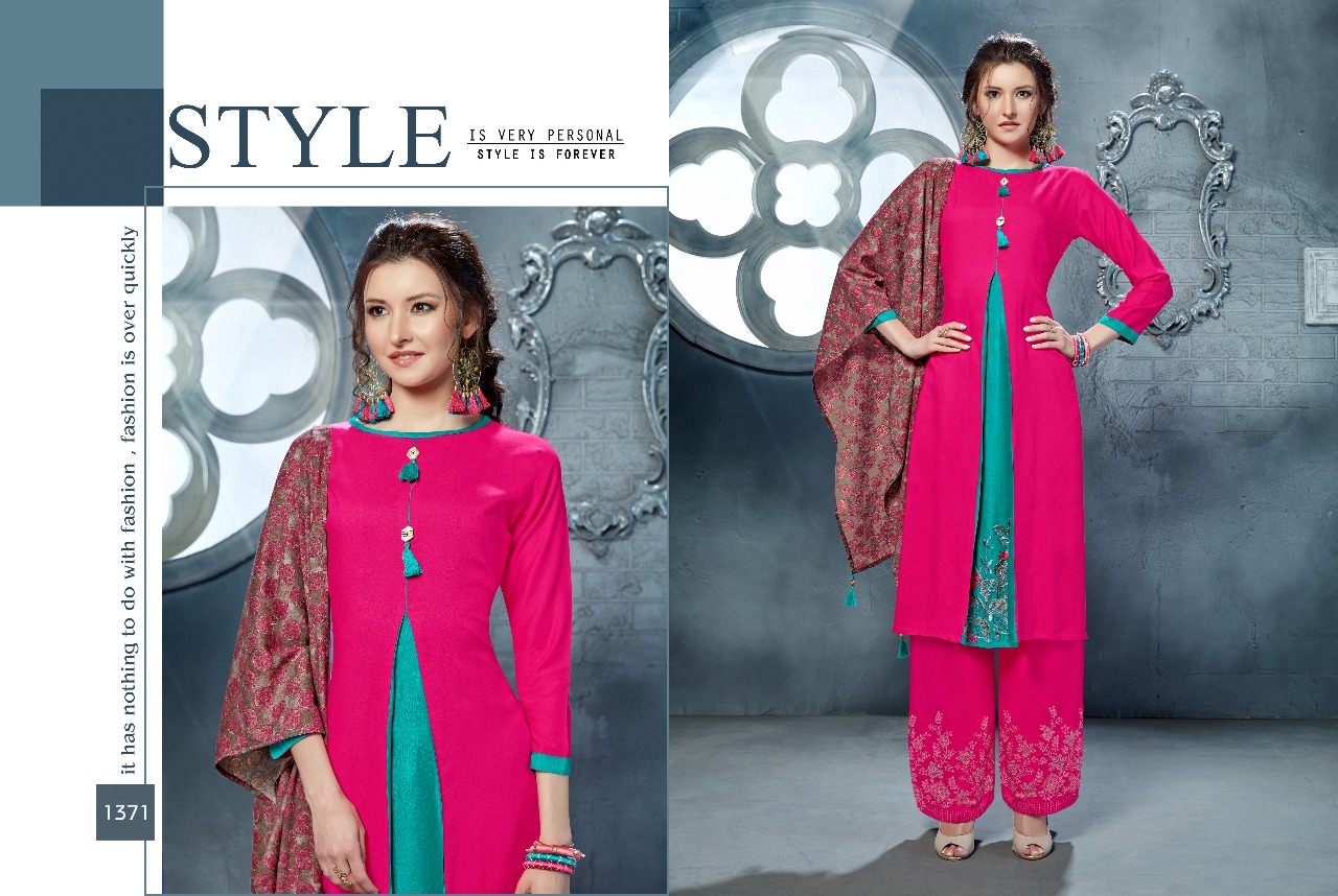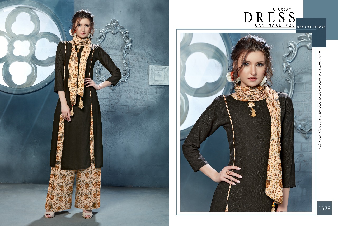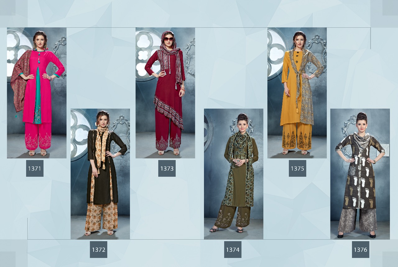 Buy Online Vs Elliza 1371 Series Three Pieces Kurti Designer Reyon Kurti With Printed Plazo And Muffler Wholesale Price Surat Wholesale Dealer 6 Pcs of Full Catalogue at Wholesale Price. Looking for Vs Elliza 1371 Series Three Pieces Kurti Designer Reyon Kurti With Printed Plazo And Muffler Wholesale Price Surat Wholesale Dealer Full Catalouge at Best Price? Buy Now Vs Elliza 1371 Series Three Pieces Kurti Designer Reyon Kurti With Printed Plazo And Muffler Wholesale Price Surat Wholesale Dealer at Wholesale Rate of Rs 5610 with Total 6 Pcs from authroized dealer and supplier of VS Brand. Cost of Each piece is just only Rs 935 which is very low and affordable price to resale the product in your retail store ,This is Surat based Wholesale Supplier & Dealer of VS Brand. Click on Brand name to Know more about VS Brand's products.Call or Whatsapp on 9898838984 for booking or enquiry