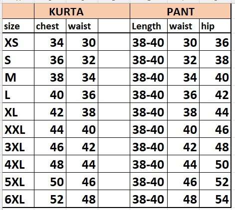 Size :- XS(34),S(36),M(38),L(40),XL(42),XXL(44),3XL(46),4XL(48),5XL(50),6XL(52)