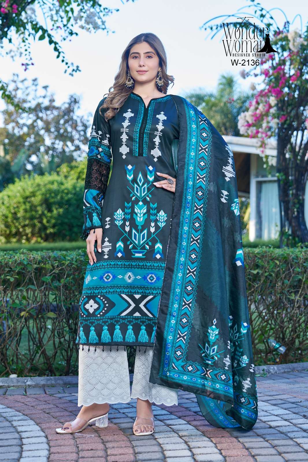 Elegant Printed Suit Set in Soothing Blue Tones 💙 By _"The Wonder Woman Designer Studio"_