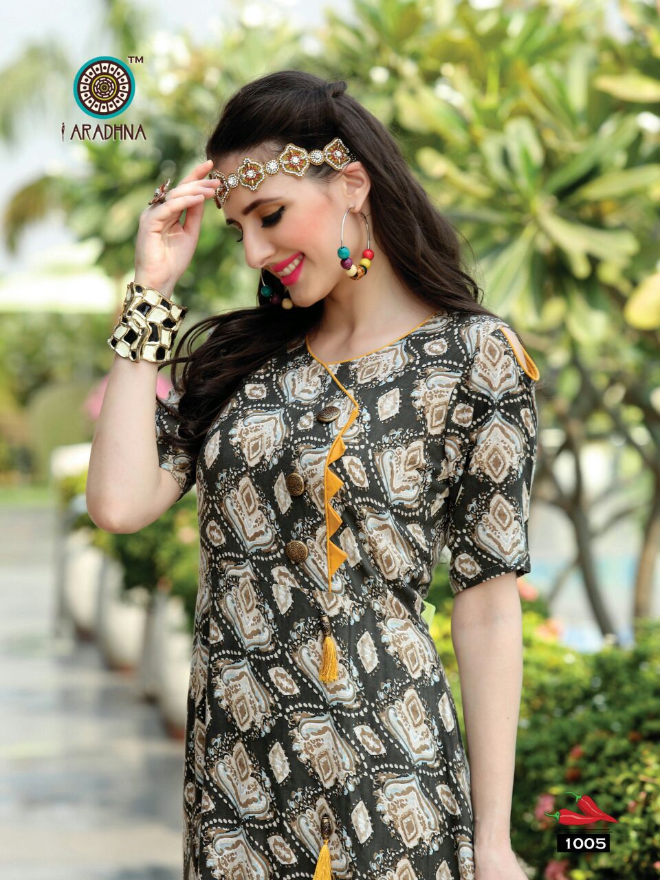 Buy Online Watermelon Aradhna Spicy Six Vol 2 1001 Series Reyon Kurti 13 Pcs of Full Catalogue at Wholesale Price. Looking for Watermelon Aradhna Spicy Six Vol 2 1001 Series Reyon Kurti Full Catalouge at Best Price? Buy Now Watermelon Aradhna Spicy Six Vol 2 1001 Series Reyon Kurti at Wholesale Rate of Rs 7215 with Total 13 Pcs from authroized dealer and supplier of WATERMELON Brand. Cost of Each piece is just only Rs 555 which is very low and affordable price to resale the product in your retail store ,This is Surat based Wholesale Supplier & Dealer of WATERMELON Brand. Click on Brand name to Know more about WATERMELON Brand's products.Call or Whatsapp on 9898838984 for booking or enquiry