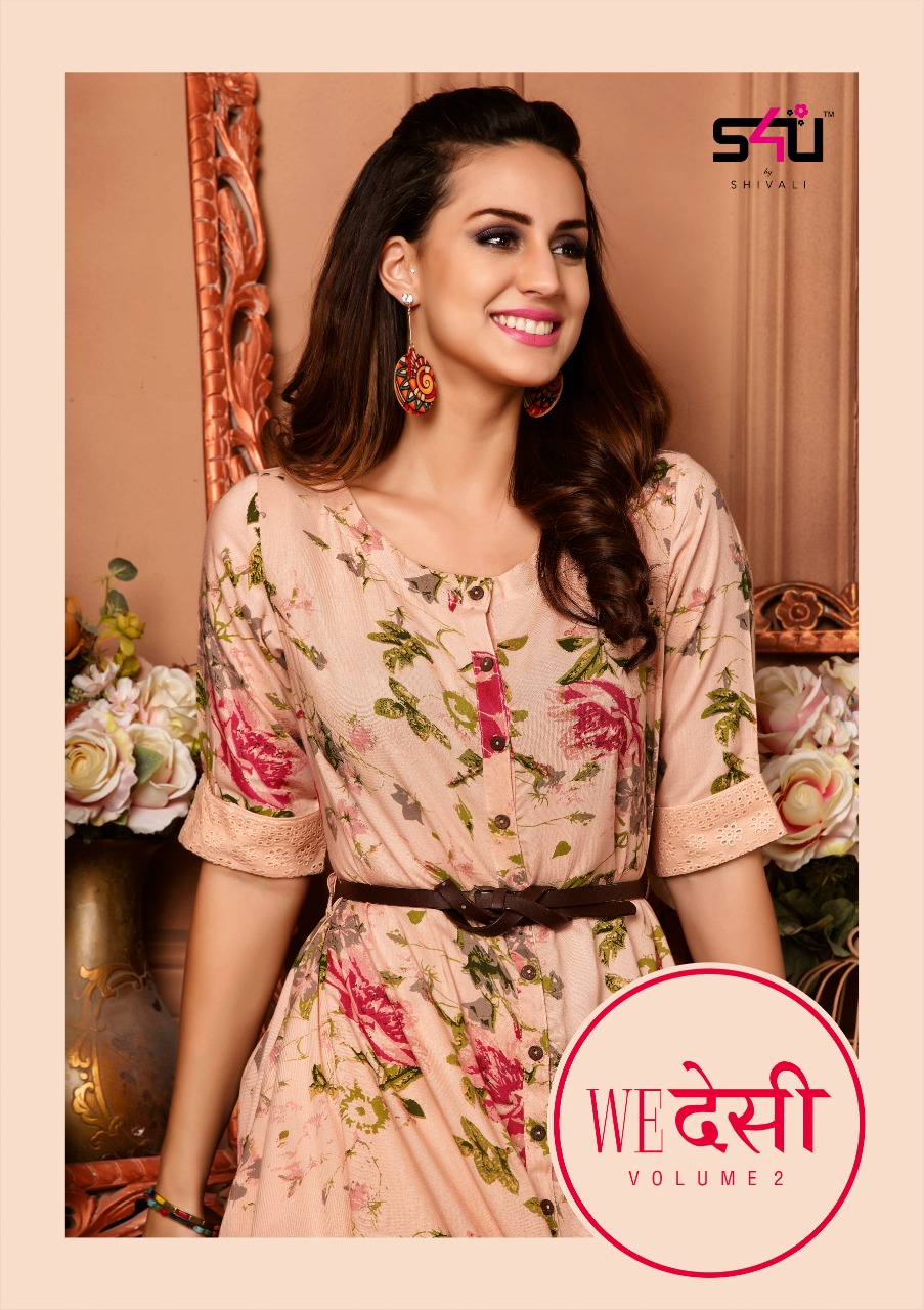 We Desi Vol 2 By S4u Shivali 201 Series Fancy Printed Kurti Collection Wholesale Dealer Surat