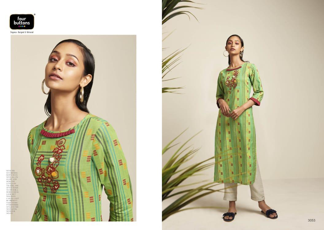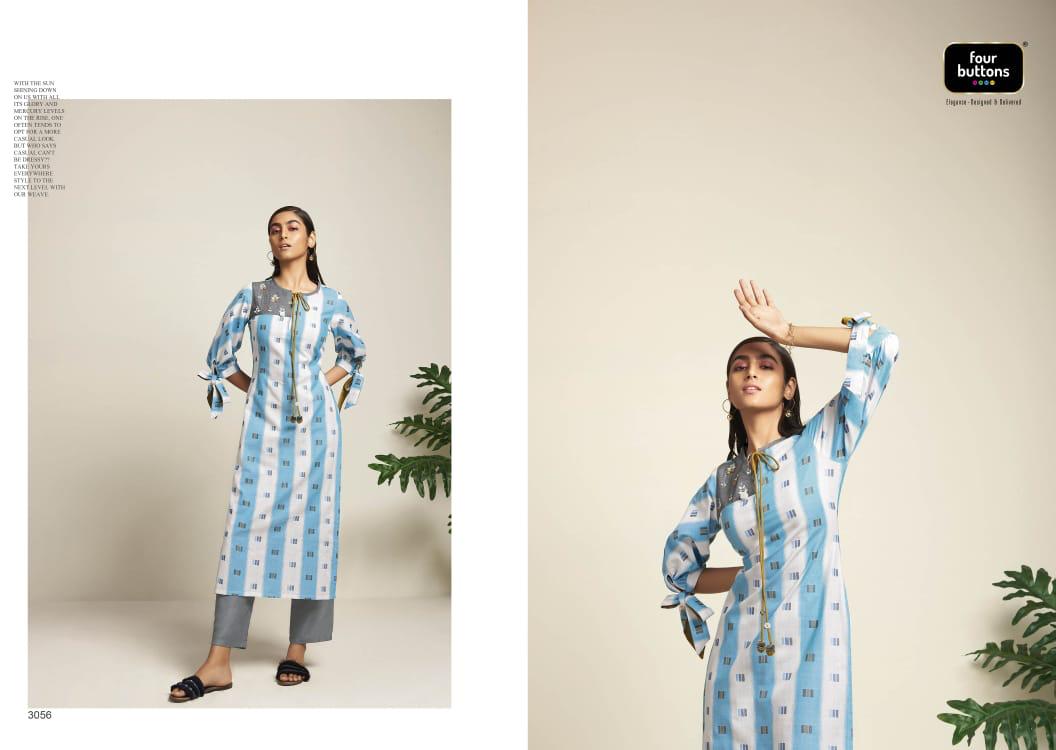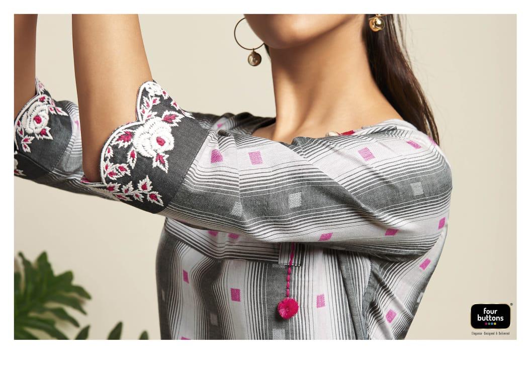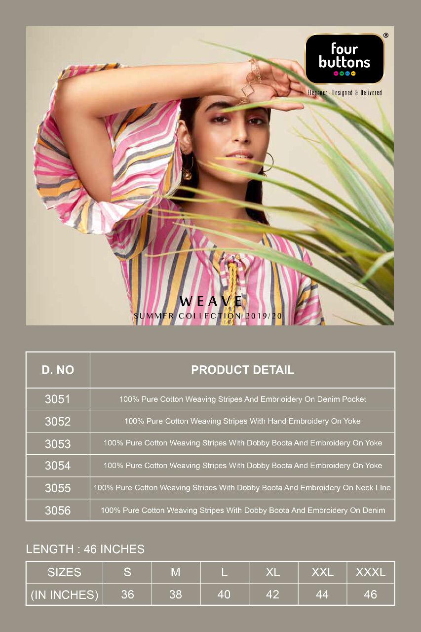 Buy Online Weaves By Four Buttons Cotton Designer Kurtis Wholesale Supplier Surat 6 Pcs of Full Catalogue at Wholesale Price. Looking for Weaves By Four Buttons Cotton Designer Kurtis Wholesale Supplier Surat Full Catalouge at Best Price? Buy Now Weaves By Four Buttons Cotton Designer Kurtis Wholesale Supplier Surat at Wholesale Rate of Rs 4170 with Total 6 Pcs from authroized dealer and supplier of FOUR BUTTONS Brand. Cost of Each piece is just only Rs 695 which is very low and affordable price to resale the product in your retail store ,This is Surat based Wholesale Supplier & Dealer of FOUR BUTTONS Brand. Click on Brand name to Know more about FOUR BUTTONS Brand's products.Call or Whatsapp on 9898838984 for booking or enquiry