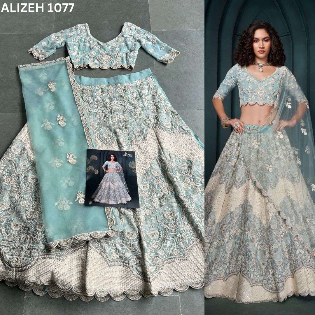 ALIZEH OFFICIAL WEDDING AFFAIR VOL-3 🎊🎊 THE PREMIUM LEHENGA COLLECTION 🎊🎊 4 Beautiful Designs Of Lehenga With Heavy Embroiedery Work RATE LIST- 👇🏻 12% GST Extra Single available Book Now! |