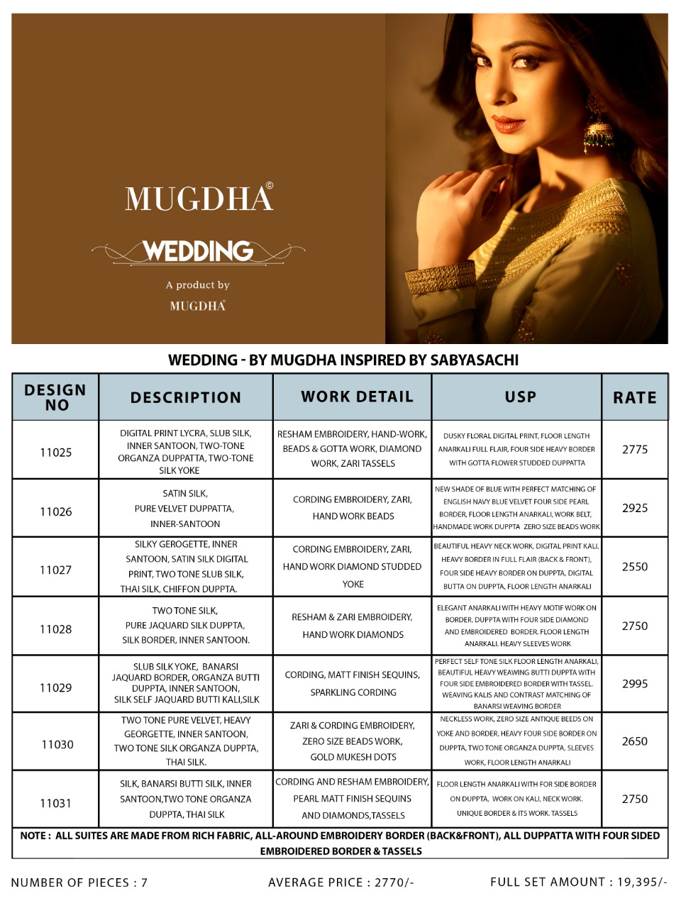 Buy Online Wedding By Mugdha 11025 Series Designer Party Wear Gown Suit Collection Wholesaler Surat 7 Pcs of Full Catalogue at Wholesale Price. Looking for Wedding By Mugdha 11025 Series Designer Party Wear Gown Suit Collection Wholesaler Surat Full Catalouge at Best Price? Buy Now Wedding By Mugdha 11025 Series Designer Party Wear Gown Suit Collection Wholesaler Surat at Wholesale Rate of Rs 19390 with Total 7 Pcs from authroized dealer and supplier of MUGDHA Brand. Cost of Each piece is just only Rs 2770 which is very low and affordable price to resale the product in your retail store ,This is Surat based Wholesale Supplier & Dealer of MUGDHA Brand. Click on Brand name to Know more about MUGDHA Brand's products.Call or Whatsapp on 9898838984 for booking or enquiry