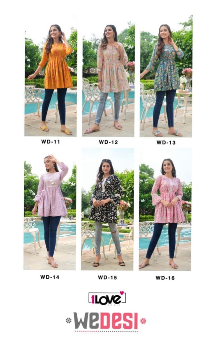 Buy Online Wedesi By 1 Love Fancy Short Top Wholesaler Supplier From Surat 6 Pcs of Full Catalogue at Wholesale Price. Looking for Wedesi By 1 Love Fancy Short Top Wholesaler Supplier From Surat Full Catalouge at Best Price? Buy Now Wedesi By 1 Love Fancy Short Top Wholesaler Supplier From Surat at Wholesale Rate of Rs 3690 with Total 6 Pcs from authroized dealer and supplier of Brand. Cost of Each piece is just only Rs 615 which is very low and affordable price to resale the product in your retail store ,This is Surat based Wholesale Supplier & Dealer of Brand. Click on Brand name to Know more about Brand's products.Call or Whatsapp on 9898838984 for booking or enquiry