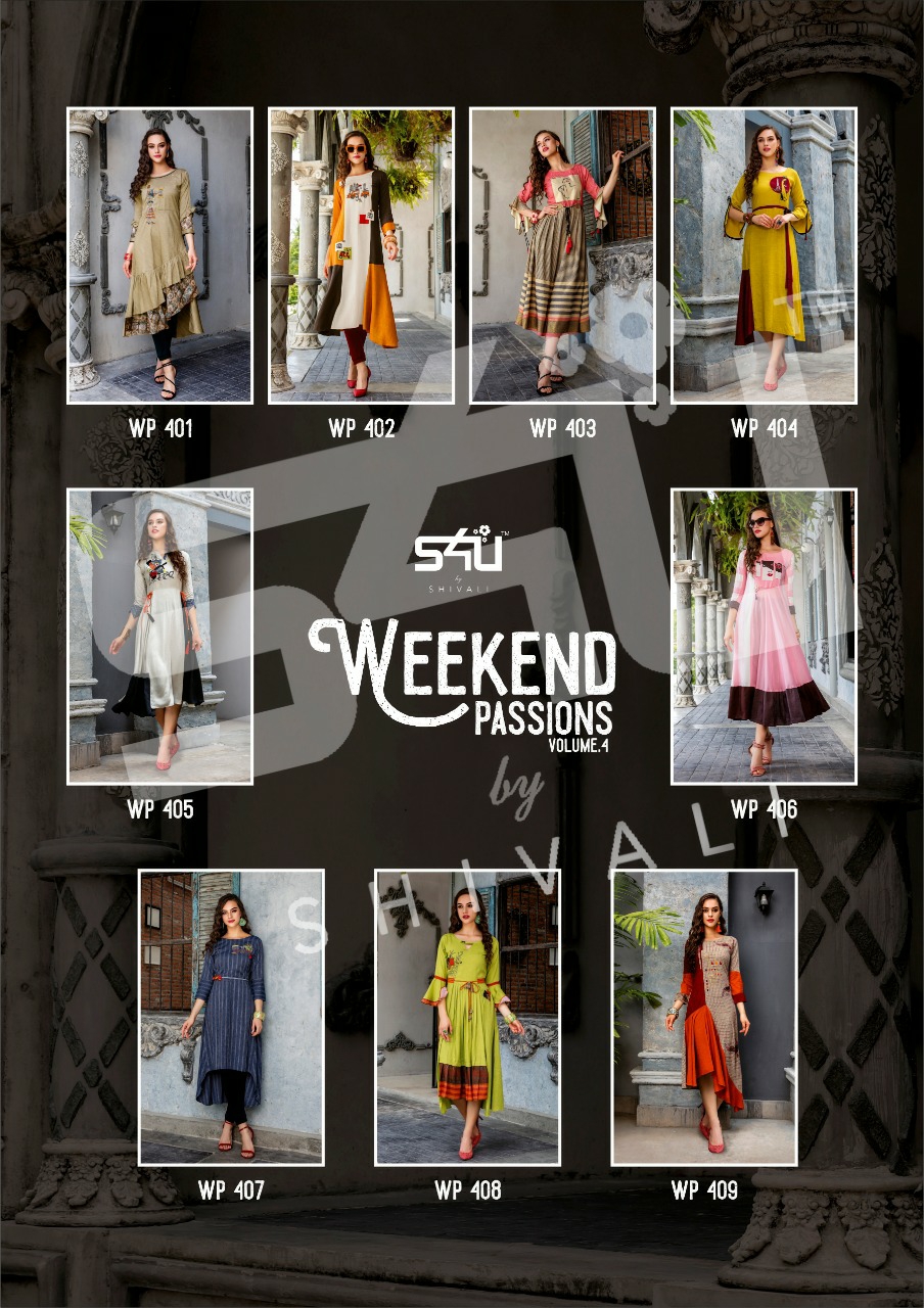 Buy Online Weekend Passion By S4u Shivali Fancy Designer Party Wear Kurtis Wholesale Supplier Nd Dealer Gujarat 9 Pcs of Full Catalogue at Wholesale Price. Looking for Weekend Passion By S4u Shivali Fancy Designer Party Wear Kurtis Wholesale Supplier Nd Dealer Gujarat Full Catalouge at Best Price? Buy Now Weekend Passion By S4u Shivali Fancy Designer Party Wear Kurtis Wholesale Supplier Nd Dealer Gujarat at Wholesale Rate of Rs 8370 with Total 9 Pcs from authroized dealer and supplier of S4U Brand. Cost of Each piece is just only Rs 930 which is very low and affordable price to resale the product in your retail store ,This is Surat based Wholesale Supplier & Dealer of S4U Brand. Click on Brand name to Know more about S4U Brand's products.Call or Whatsapp on 9898838984 for booking or enquiry