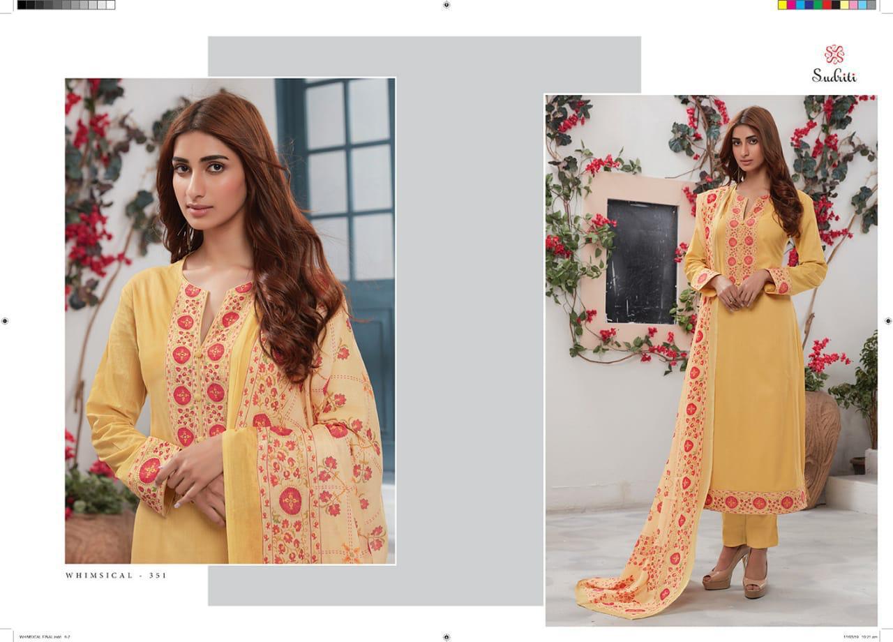 Buy Online Whimsical By Sudriti Fancy Cotton Slub Cambric Digital Printed Salwar Kameez Catlog Wholesaler Surat 12 Pcs of Full Catalogue at Wholesale Price. Looking for Whimsical By Sudriti Fancy Cotton Slub Cambric Digital Printed Salwar Kameez Catlog Wholesaler Surat Full Catalouge at Best Price? Buy Now Whimsical By Sudriti Fancy Cotton Slub Cambric Digital Printed Salwar Kameez Catlog Wholesaler Surat at Wholesale Rate of Rs 11940 with Total 12 Pcs from authroized dealer and supplier of SUDRITI Brand. Cost of Each piece is just only Rs 995 which is very low and affordable price to resale the product in your retail store ,This is Surat based Wholesale Supplier & Dealer of SUDRITI Brand. Click on Brand name to Know more about SUDRITI Brand's products.Call or Whatsapp on 9898838984 for booking or enquiry