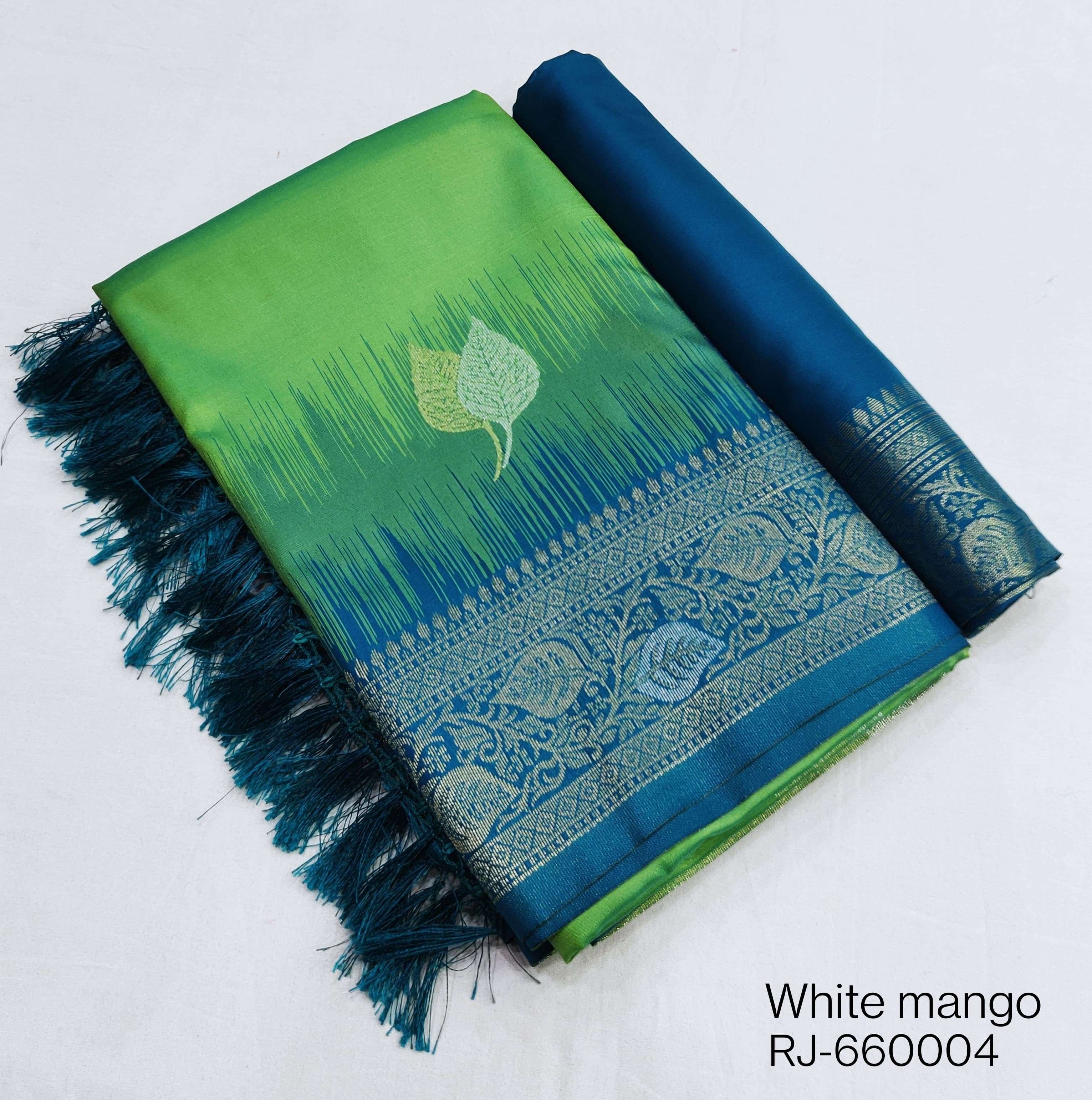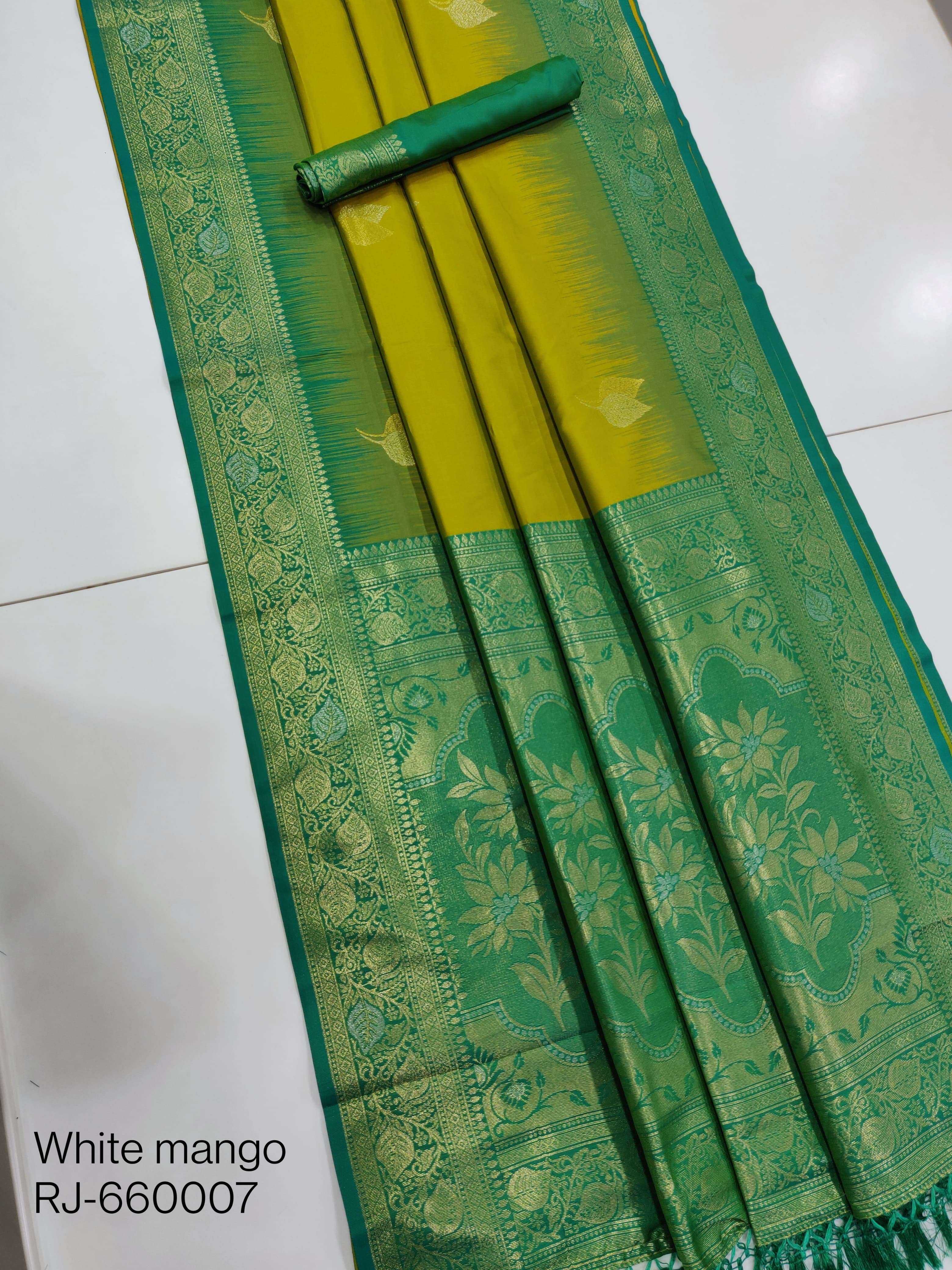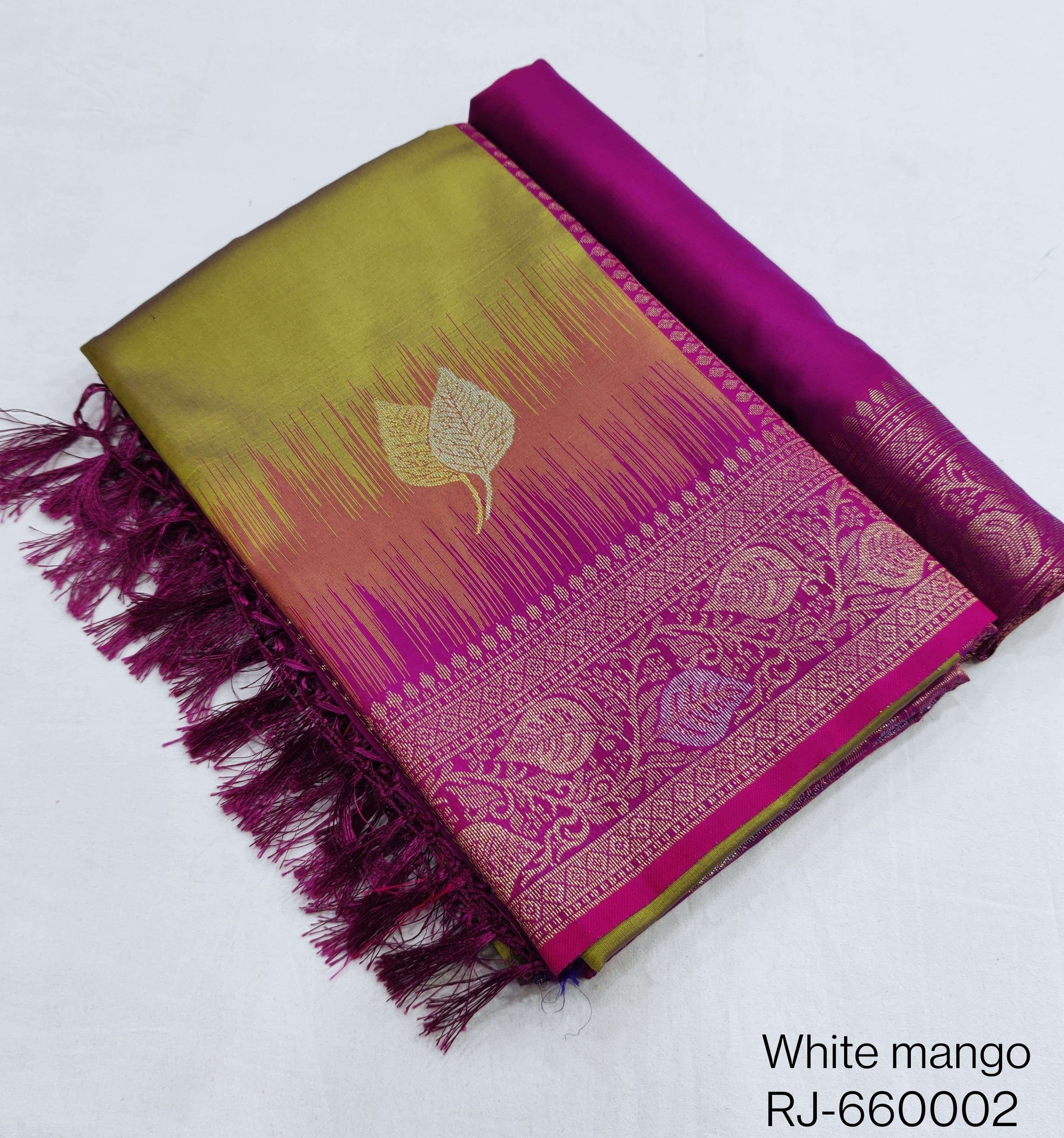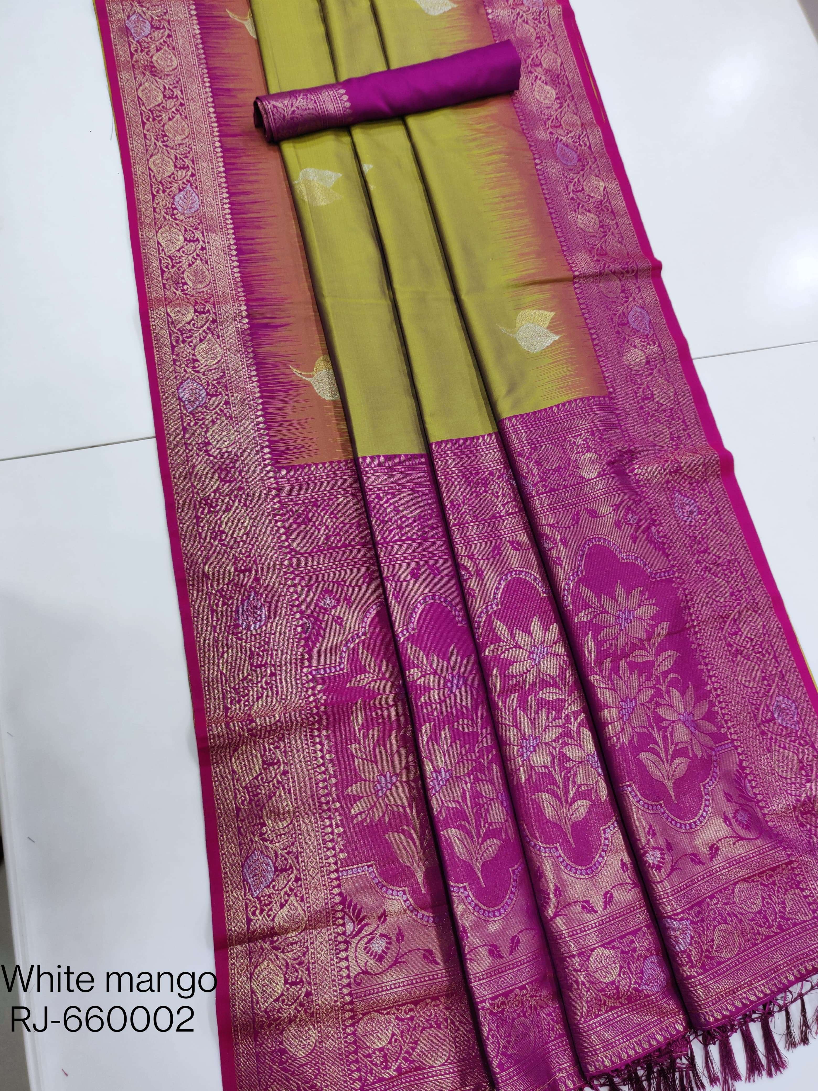 ➡️Catalog - *White Mango* ➡️Rate *1595+5%* ➡️Fabric *Pure Touch Soft Silk with Amazing Zari Weaving*