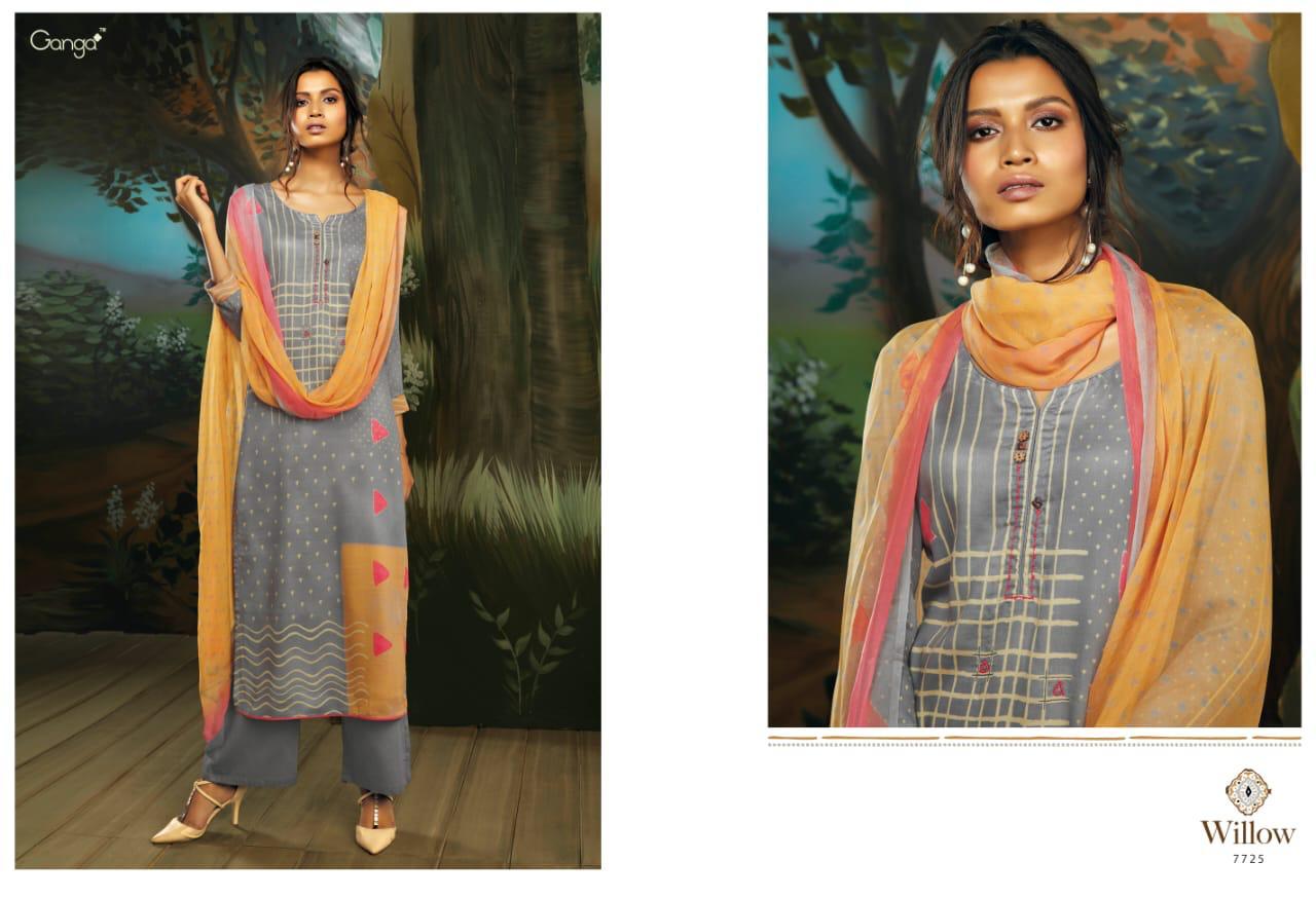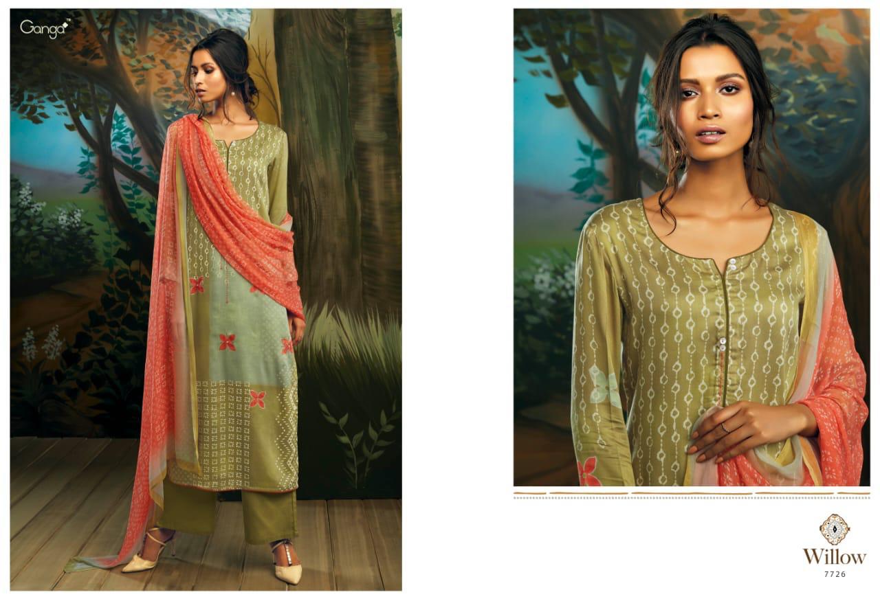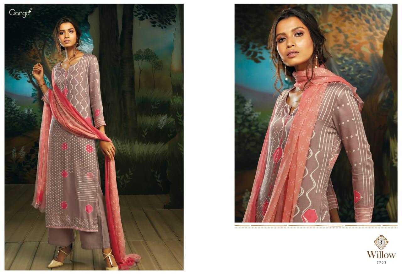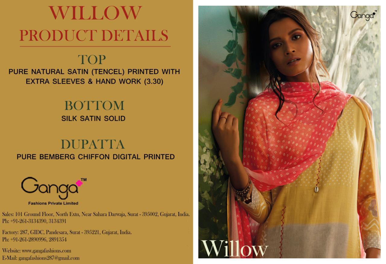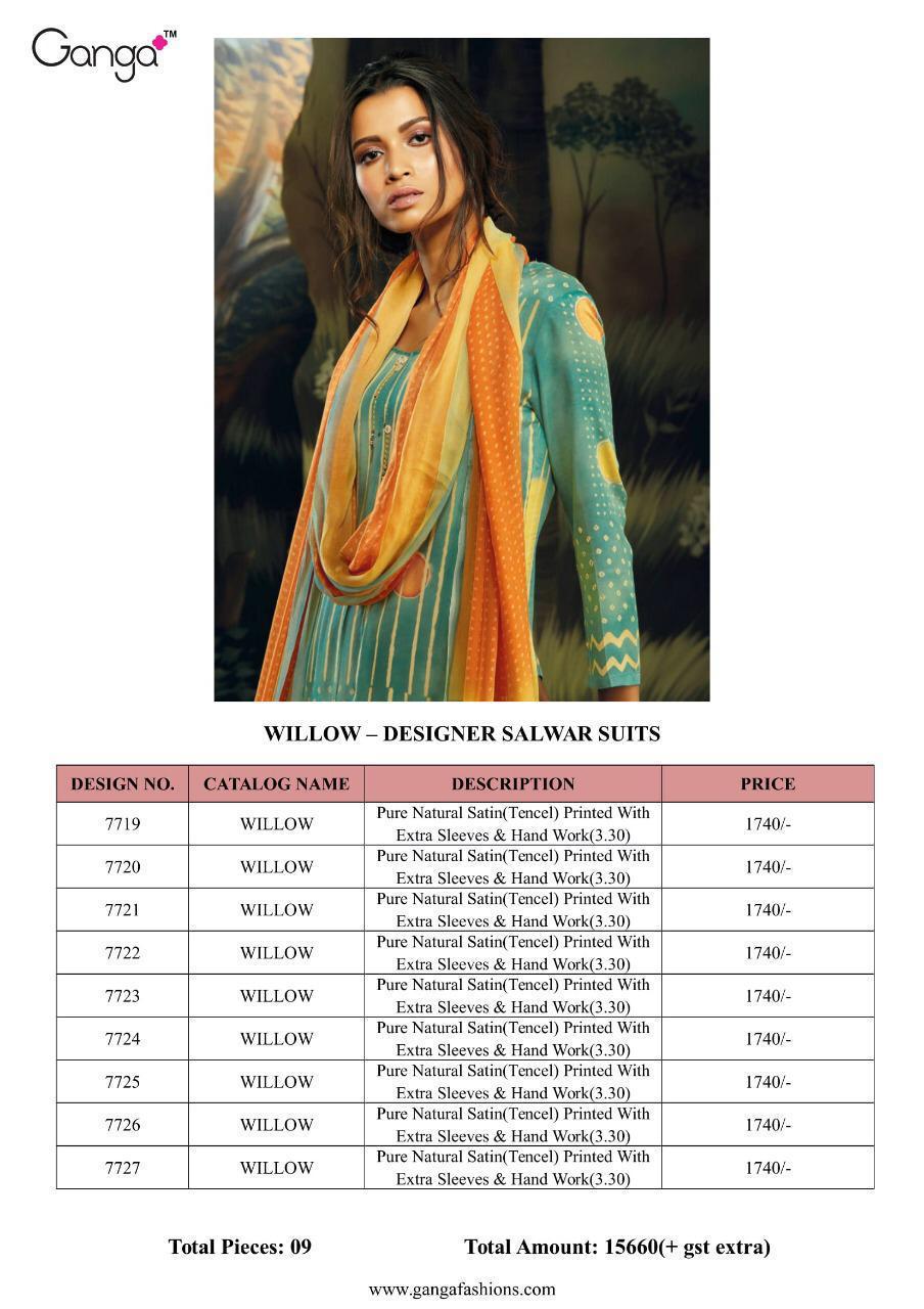 Buy Online Willow By Ganga Series 7719 To 7727 Natural Satin Printed Suits Wholesale Supplier India 9 Pcs of Full Catalogue at Wholesale Price. Looking for Willow By Ganga Series 7719 To 7727 Natural Satin Printed Suits Wholesale Supplier India Full Catalouge at Best Price? Buy Now Willow By Ganga Series 7719 To 7727 Natural Satin Printed Suits Wholesale Supplier India at Wholesale Rate of Rs 15660 with Total 9 Pcs from authroized dealer and supplier of GANGA Brand. Cost of Each piece is just only Rs 1740 which is very low and affordable price to resale the product in your retail store ,This is Surat based Wholesale Supplier & Dealer of GANGA Brand. Click on Brand name to Know more about GANGA Brand's products.Call or Whatsapp on 9898838984 for booking or enquiry