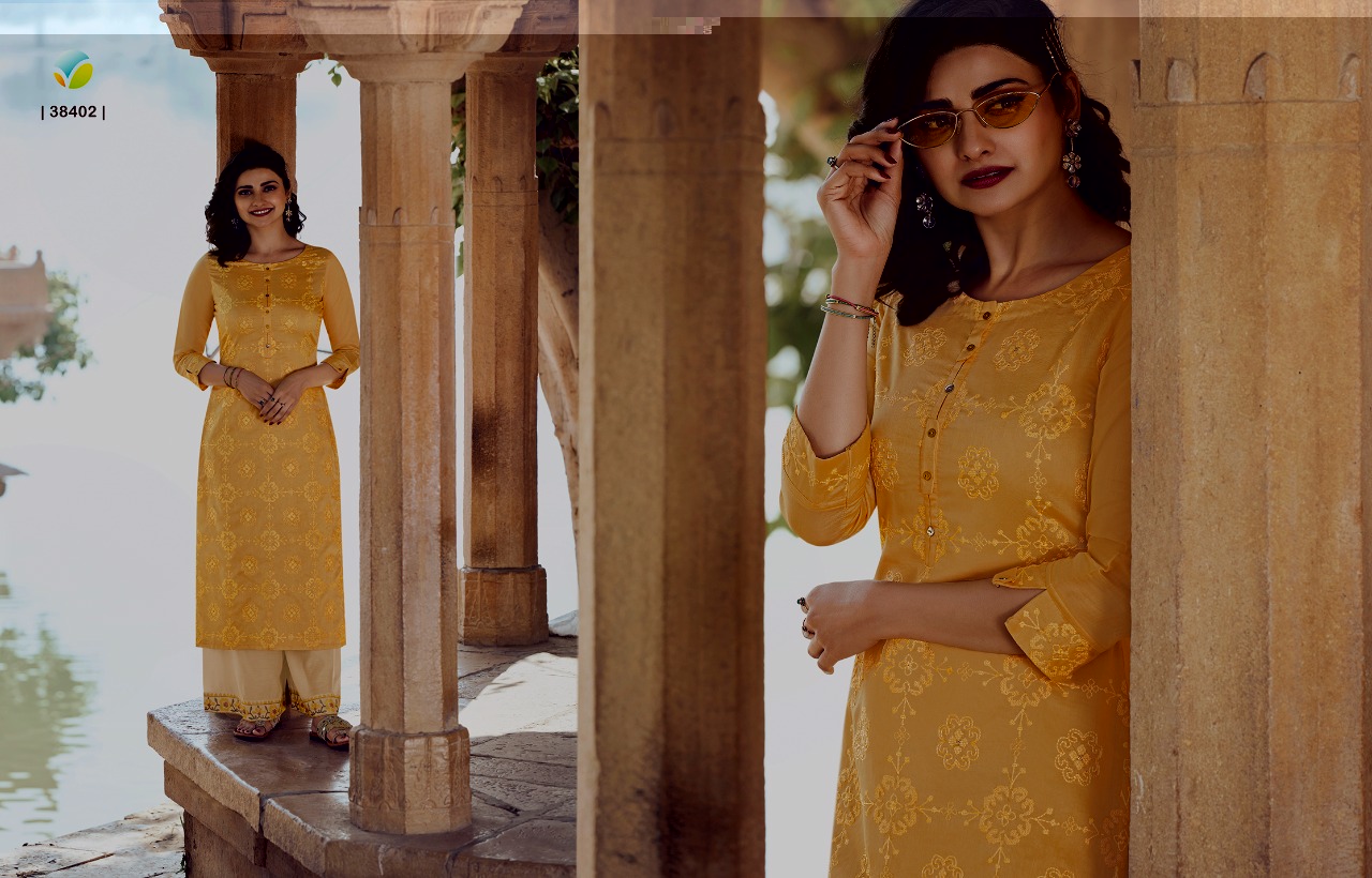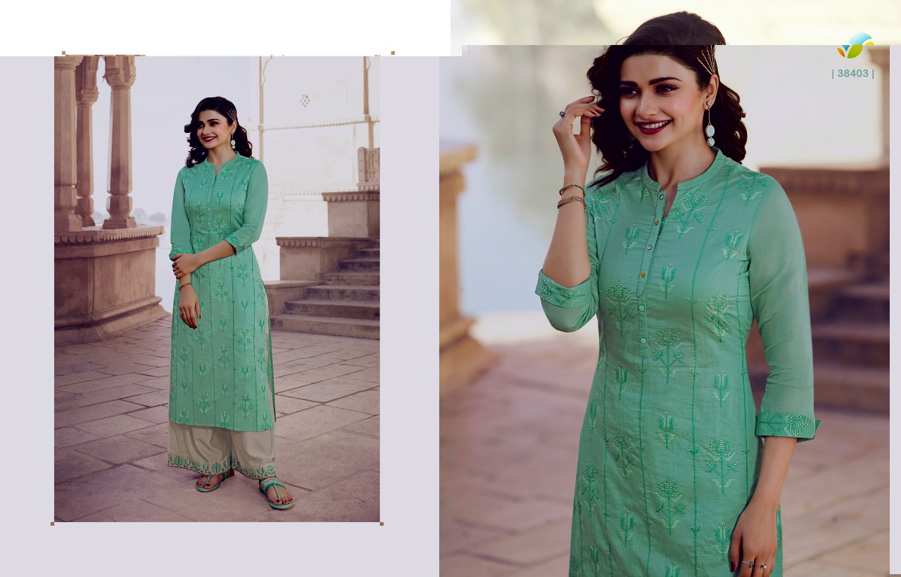 *TUMBAA - WINK-2* *AVAILABLE SIZE : L-XL-XXL* *PURE KORA SILK WITH CROSS STICH EMBROIDERY & PURE KORA SILK PLAZZO* |