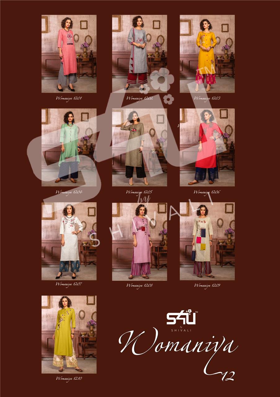Buy Online Womaniya Vol 12 By S4u By Shivali Designer Party Wear Kurtis With Plazzo Wholesale Supplier Surat 10 Pcs of Full Catalogue at Wholesale Price. Looking for Womaniya Vol 12 By S4u By Shivali Designer Party Wear Kurtis With Plazzo Wholesale Supplier Surat Full Catalouge at Best Price? Buy Now Womaniya Vol 12 By S4u By Shivali Designer Party Wear Kurtis With Plazzo Wholesale Supplier Surat at Wholesale Rate of Rs 10990 with Total 10 Pcs from authroized dealer and supplier of S4U Brand. Cost of Each piece is just only Rs 1099 which is very low and affordable price to resale the product in your retail store ,This is Surat based Wholesale Supplier & Dealer of S4U Brand. Click on Brand name to Know more about S4U Brand's products.Call or Whatsapp on 9898838984 for booking or enquiry