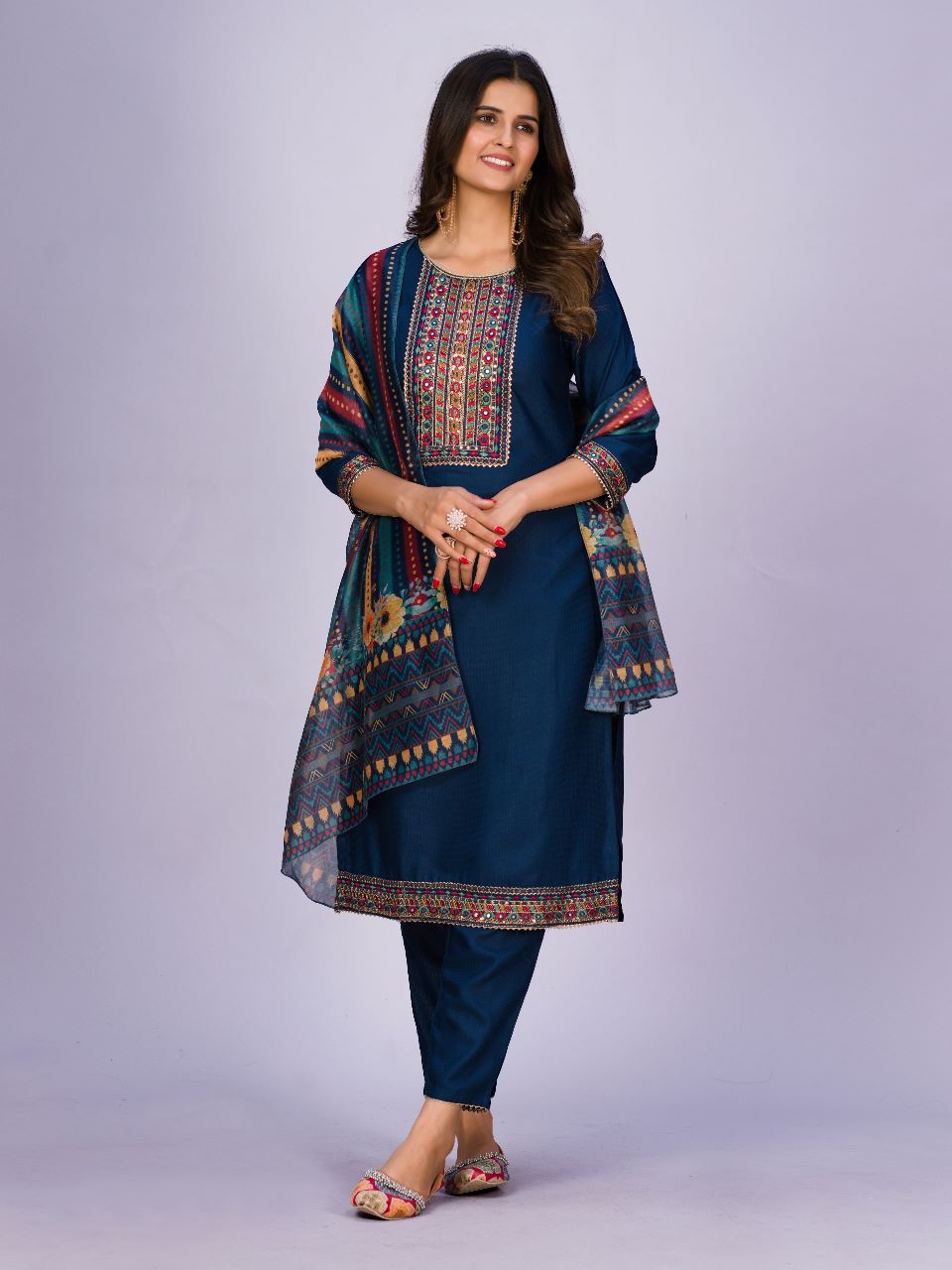 Women Design 376 Blue Sequin Embroidery Viscos Rayon Kurti Bottom Duppata
