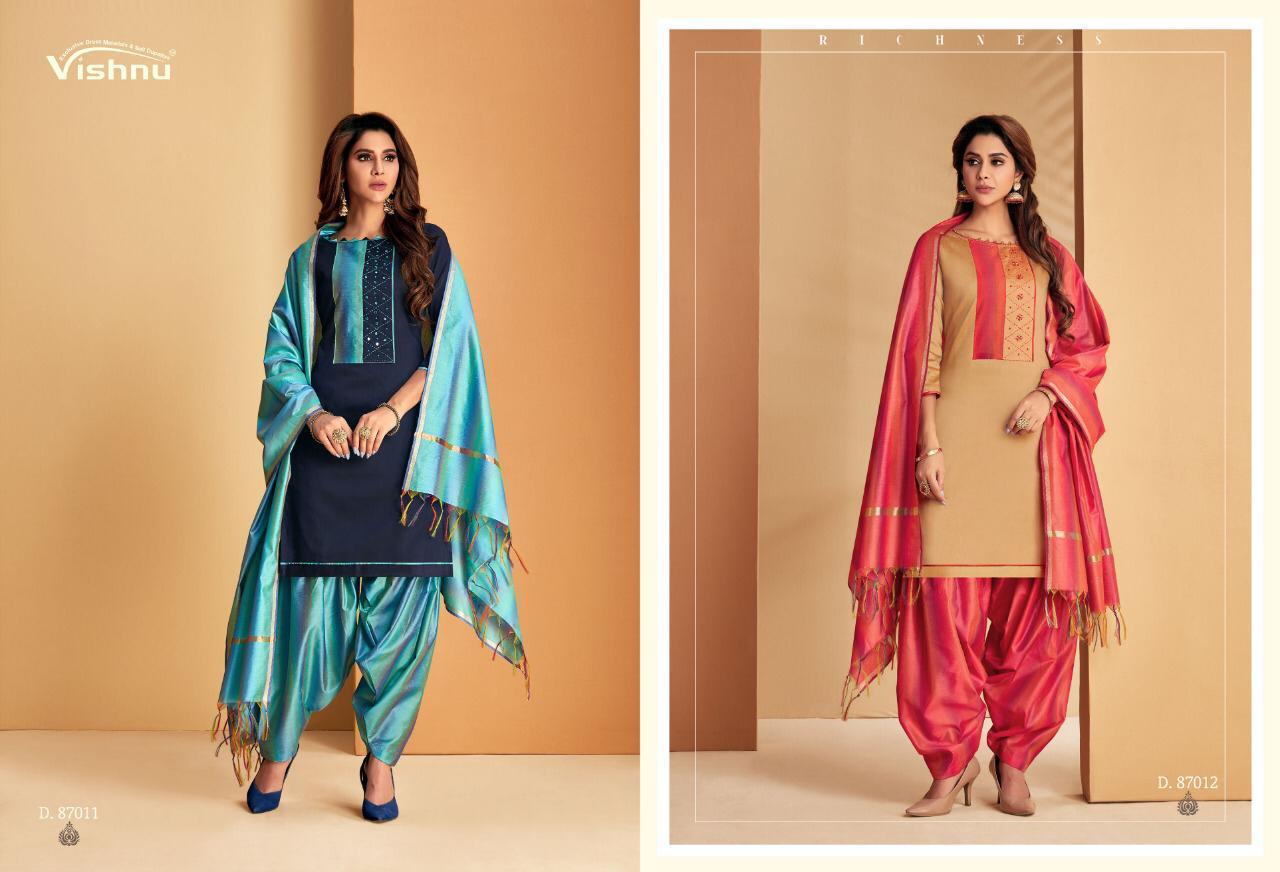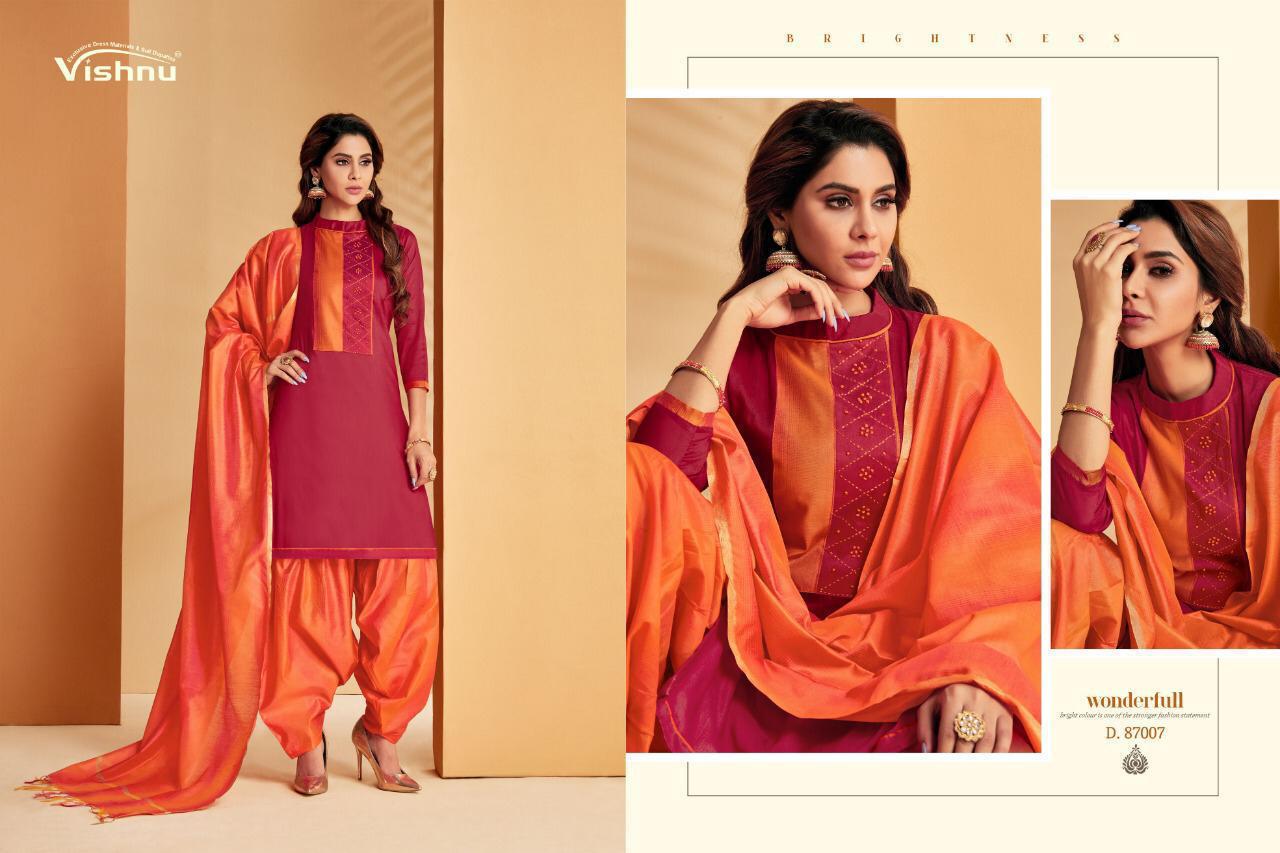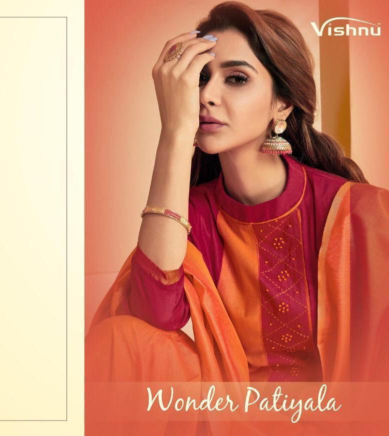 Buy Online Wonder Patiyala By Vishnu Impex Designer Patiyala Suits Wholesale Supplier India 12 Pcs of Full Catalogue at Wholesale Price. Looking for Wonder Patiyala By Vishnu Impex Designer Patiyala Suits Wholesale Supplier India Full Catalouge at Best Price? Buy Now Wonder Patiyala By Vishnu Impex Designer Patiyala Suits Wholesale Supplier India at Wholesale Rate of Rs 8100 with Total 12 Pcs from authroized dealer and supplier of VISHNU IMPEX Brand. Cost of Each piece is just only Rs 675 which is very low and affordable price to resale the product in your retail store ,This is Surat based Wholesale Supplier & Dealer of VISHNU IMPEX Brand. Click on Brand name to Know more about VISHNU IMPEX Brand's products.Call or Whatsapp on 9898838984 for booking or enquiry