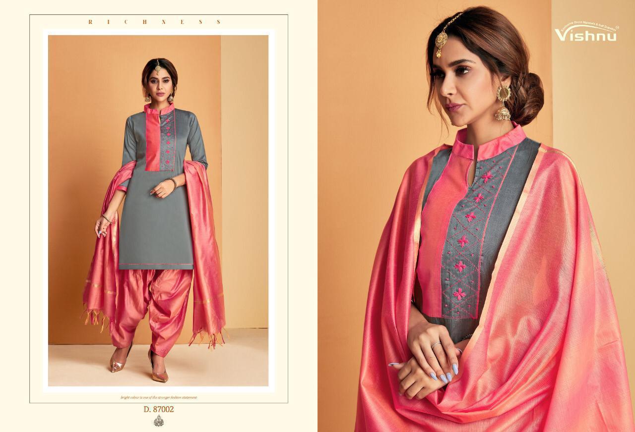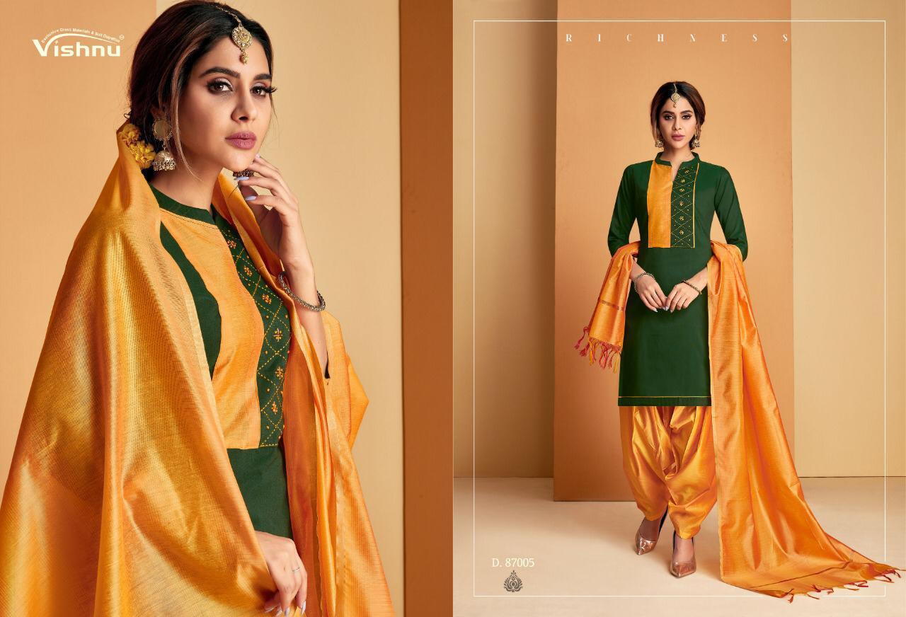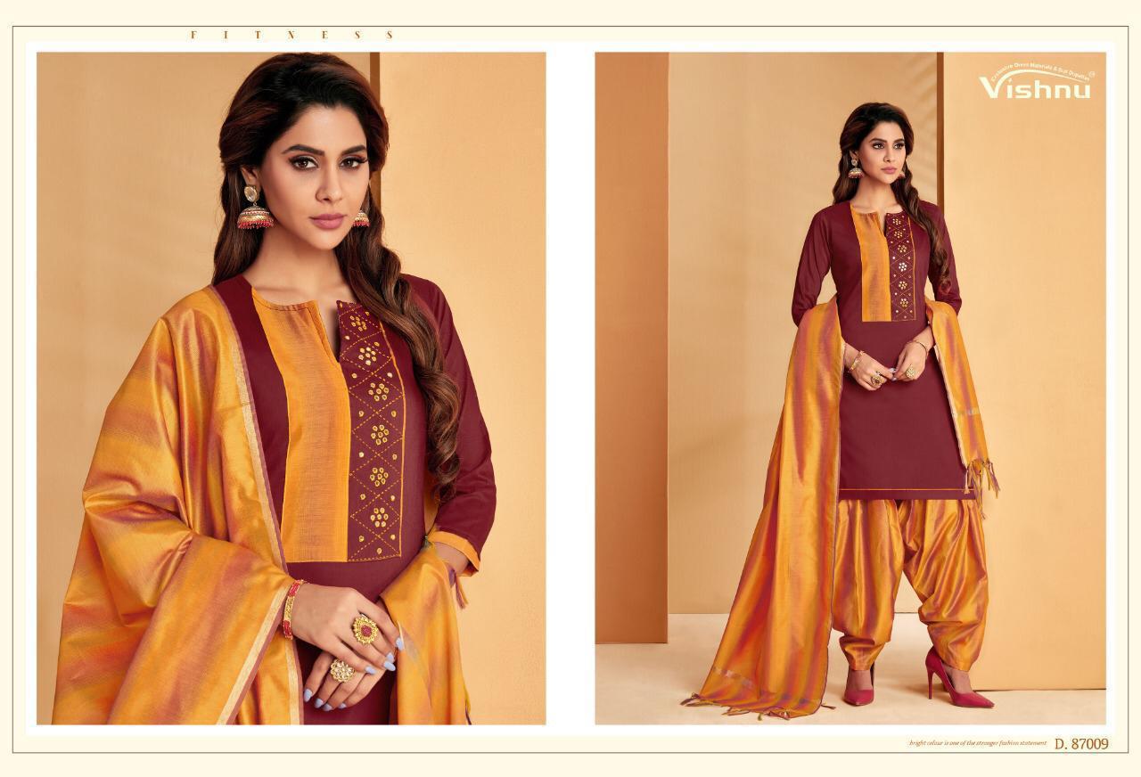 Buy Online Wonder Patiyala By Vishnu Impex Designer Patiyala Suits Wholesale Supplier India 12 Pcs of Full Catalogue at Wholesale Price. Looking for Wonder Patiyala By Vishnu Impex Designer Patiyala Suits Wholesale Supplier India Full Catalouge at Best Price? Buy Now Wonder Patiyala By Vishnu Impex Designer Patiyala Suits Wholesale Supplier India at Wholesale Rate of Rs 8100 with Total 12 Pcs from authroized dealer and supplier of VISHNU IMPEX Brand. Cost of Each piece is just only Rs 675 which is very low and affordable price to resale the product in your retail store ,This is Surat based Wholesale Supplier & Dealer of VISHNU IMPEX Brand. Click on Brand name to Know more about VISHNU IMPEX Brand's products.Call or Whatsapp on 9898838984 for booking or enquiry