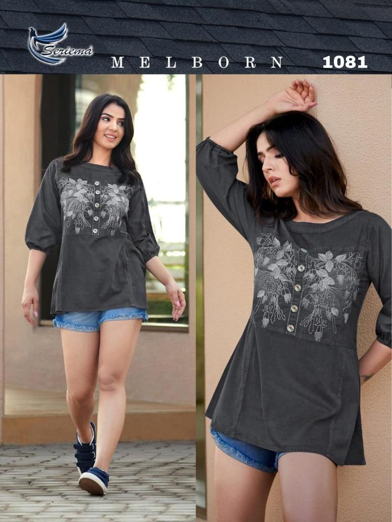 *SERIEMA* Matching style and class with luxury and comfort�.! *FUNKY LOOK SHORT TOPS* *SERIEMA�?* Always willing to comfort and Exclusive quality as unique as you. *CATALOGUE NAME* *WONDER-2* Brand : *SERIEMA®?* Fabric ? *TOP* :- *PURE COTTAN DENIM* *WITH STYLISH WASHING EFFECT* SIZE : *M* *L* *XL* *2XL* *3XL*      *38* *40* *42* *44*  *46* *Ready to Dispatch* 100+single |