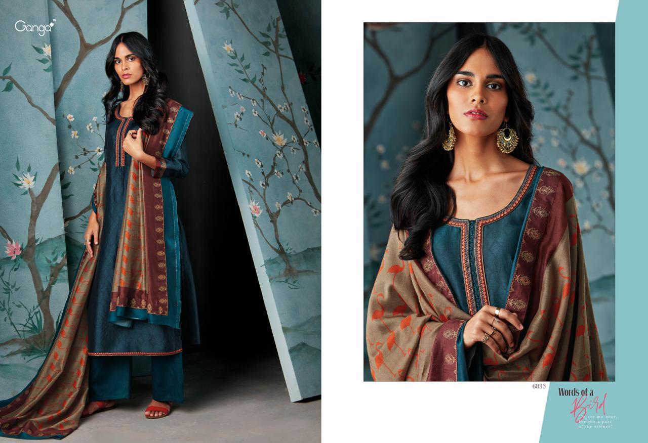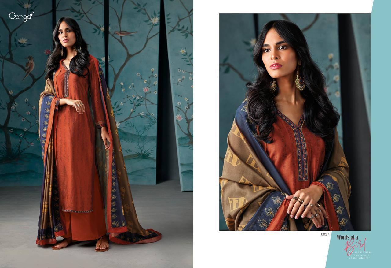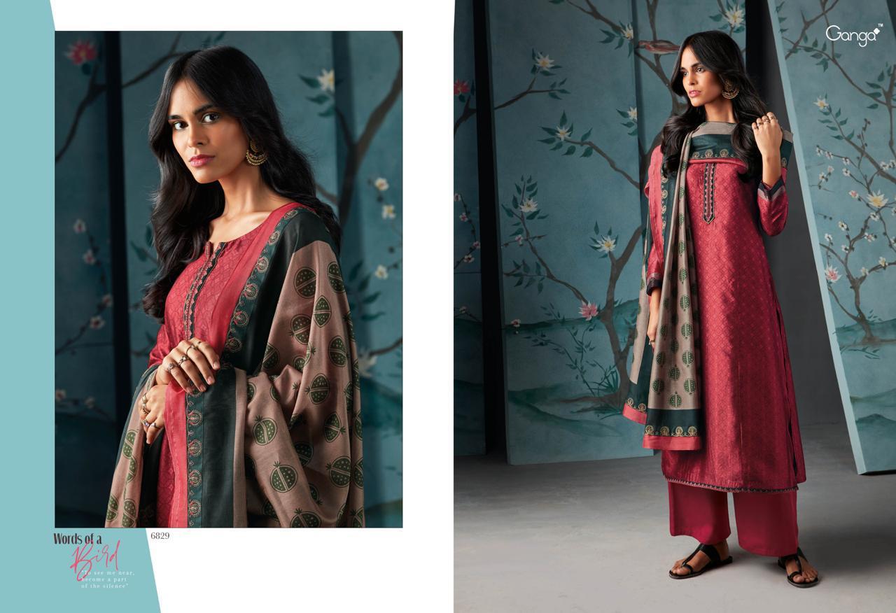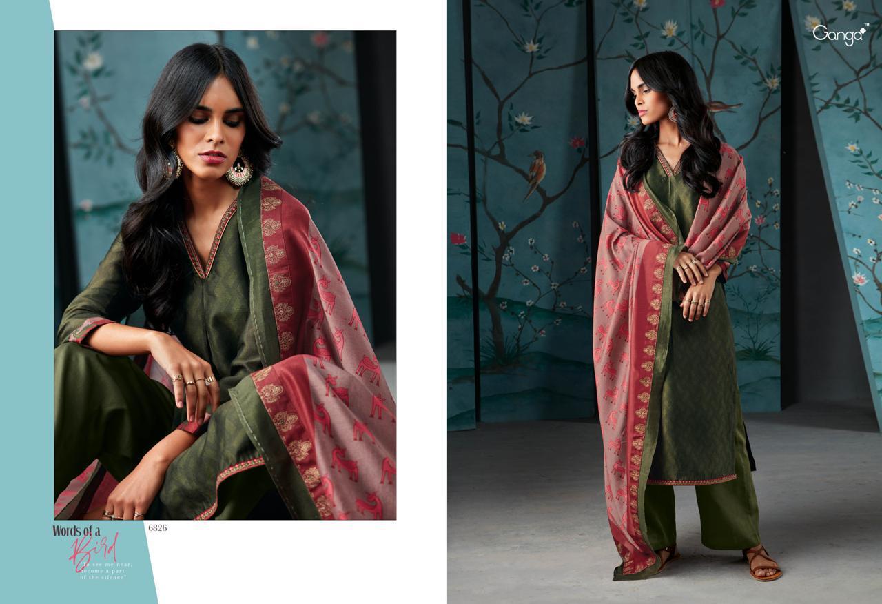 Words Of A Bird By Ganga 6825 Series Fancy Pure Silk Printed Salwar Kameez Catlog Wholesale Dealer Surat