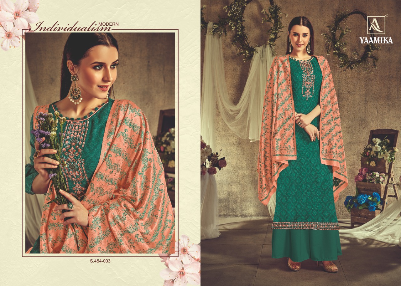 Buy Online Yaamika Incredible Pashmina Collection By Alok Suits Pashmina Dress Materials Wholesale Supplier Surat 8 Pcs of Full Catalogue at Wholesale Price. Looking for Yaamika Incredible Pashmina Collection By Alok Suits Pashmina Dress Materials Wholesale Supplier Surat Full Catalouge at Best Price? Buy Now Yaamika Incredible Pashmina Collection By Alok Suits Pashmina Dress Materials Wholesale Supplier Surat at Wholesale Rate of Rs 8400 with Total 8 Pcs from authroized dealer and supplier of Brand. Cost of Each piece is just only Rs 1050 which is very low and affordable price to resale the product in your retail store ,This is Surat based Wholesale Supplier & Dealer of Brand. Click on Brand name to Know more about Brand's products.Call or Whatsapp on 9898838984 for booking or enquiry