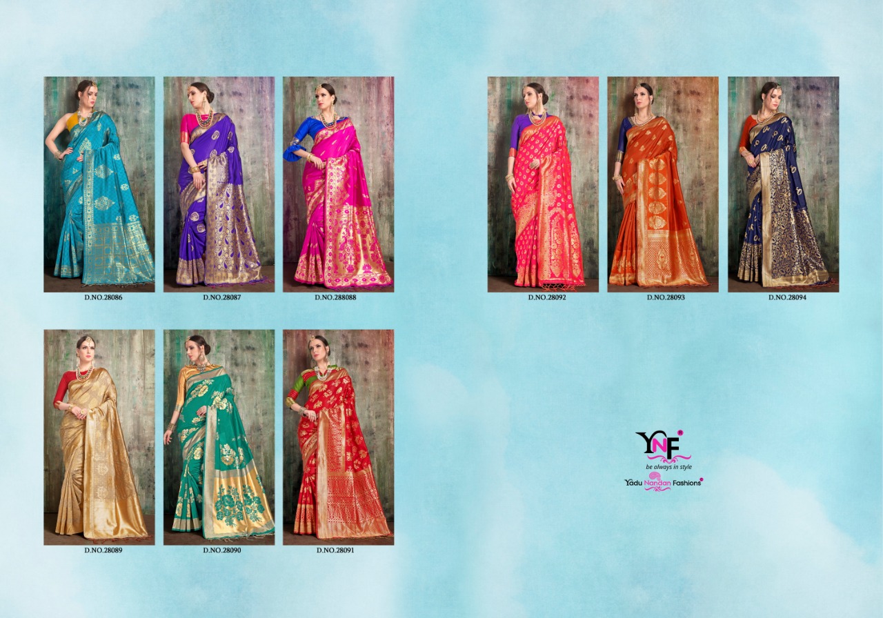 Yadunandan Fashion Maharangha 28086 Series Banarsi Art Silk Saree Catlog Wholesale Dealer And Supplier Surat