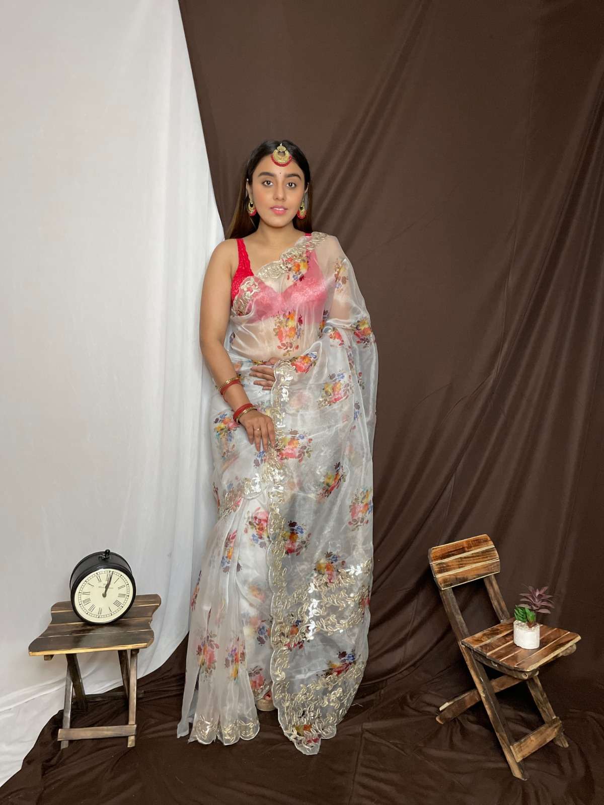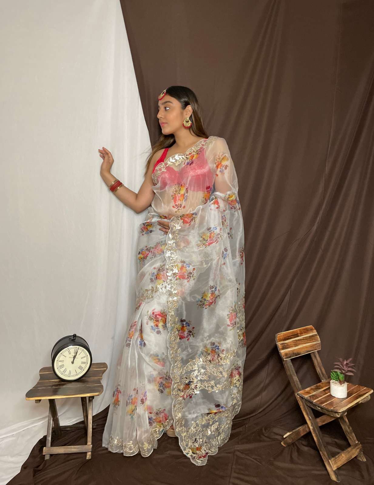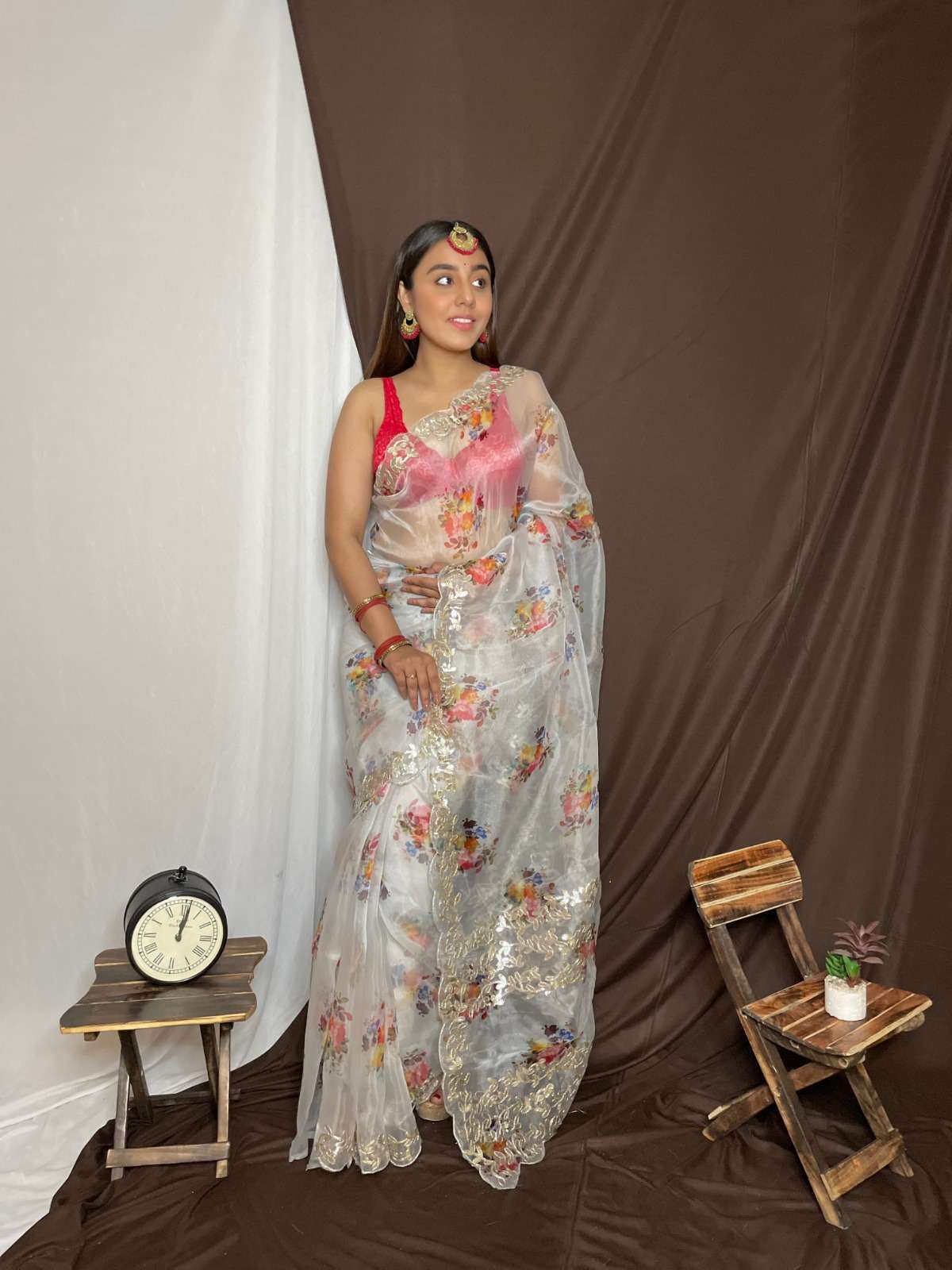 Catalog Name : *Yashodha* No of Pcs : 2 Fabric : Organza Work : Digital printed with silver zari work with banglori sattin silk blouse