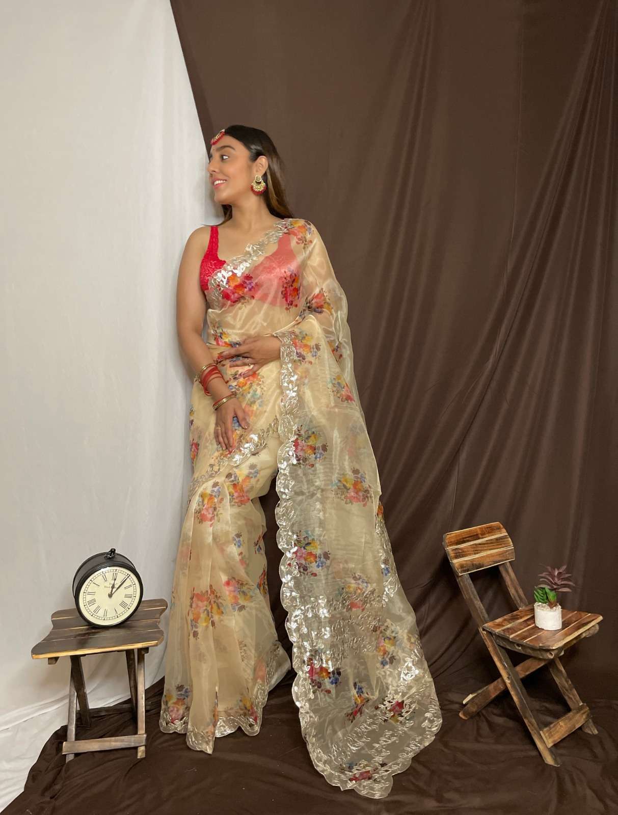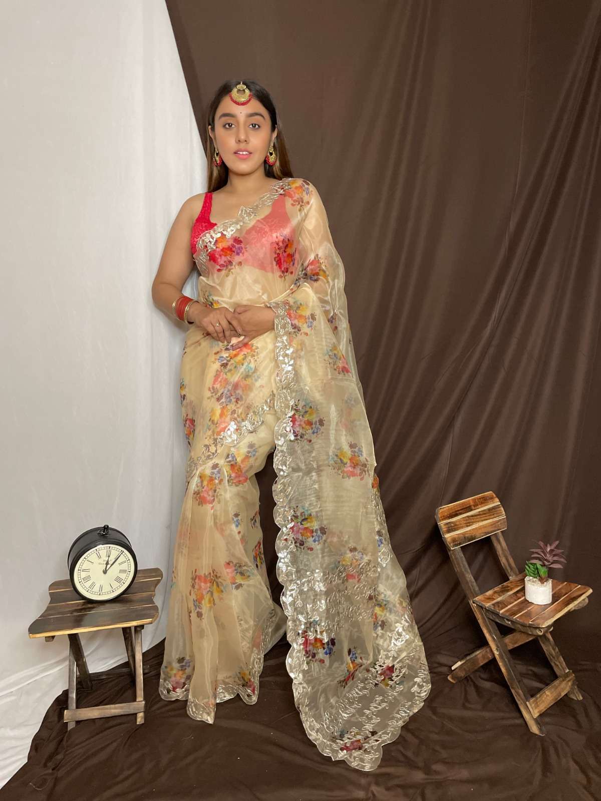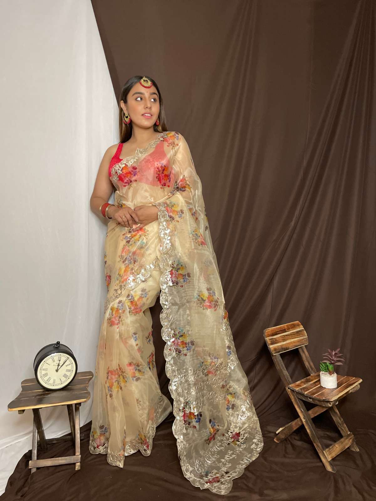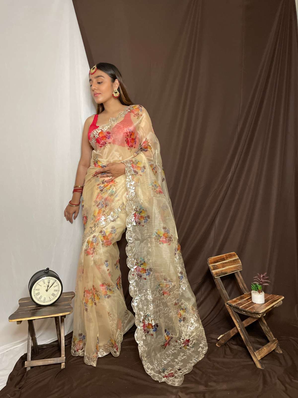 Catalog Name : *Yashodha* No of Pcs : 2 Fabric : Organza Work : Digital printed with silver zari work with banglori sattin silk blouse