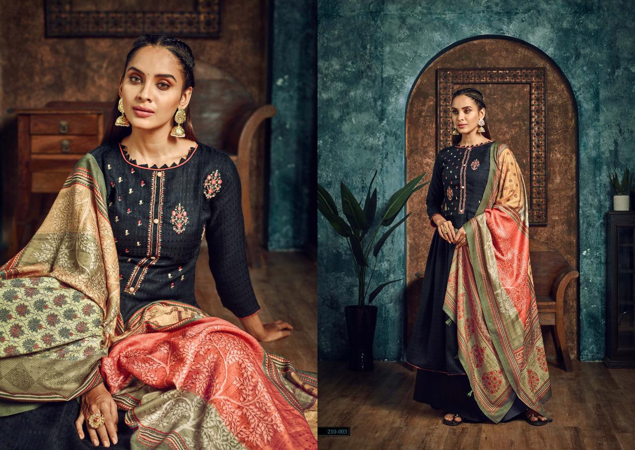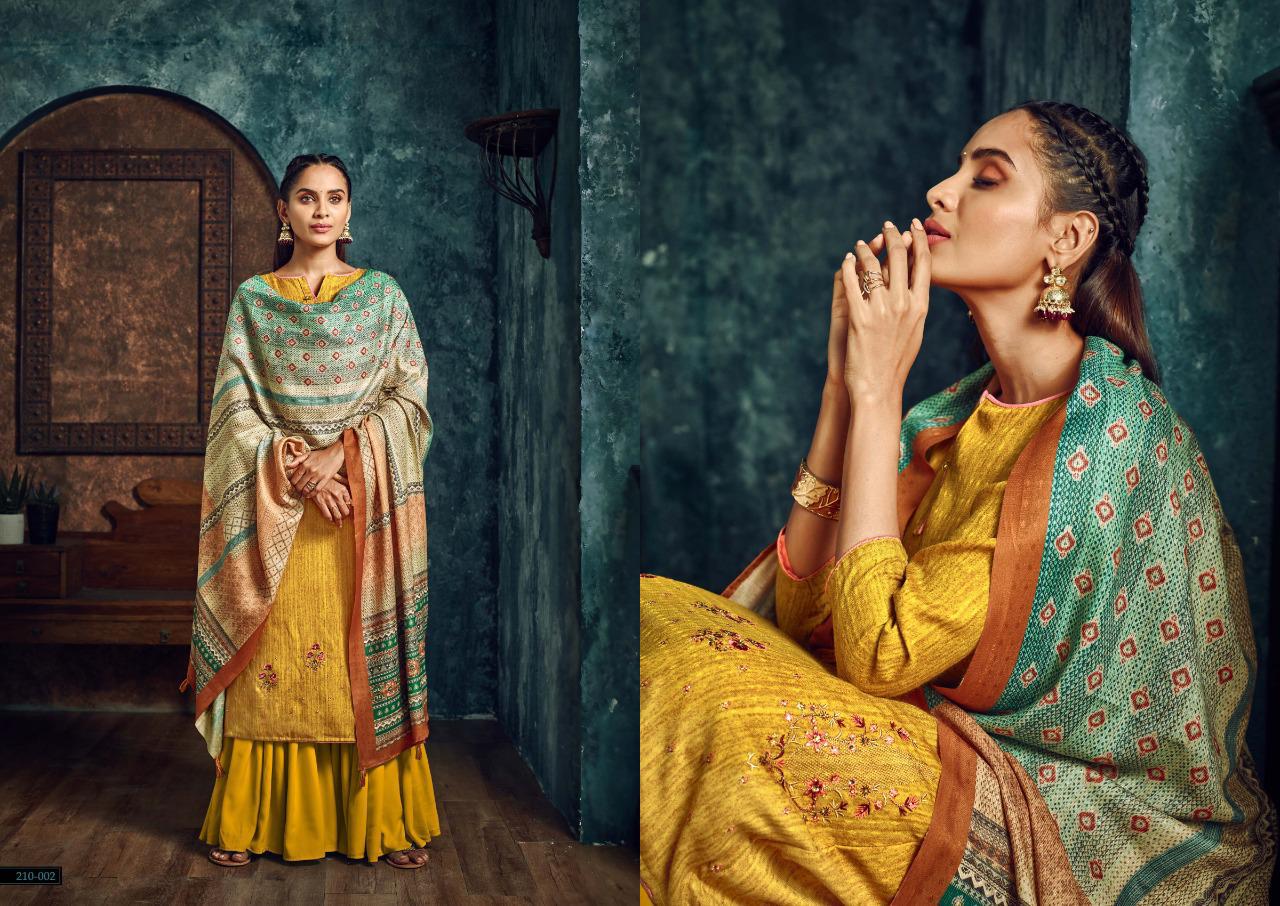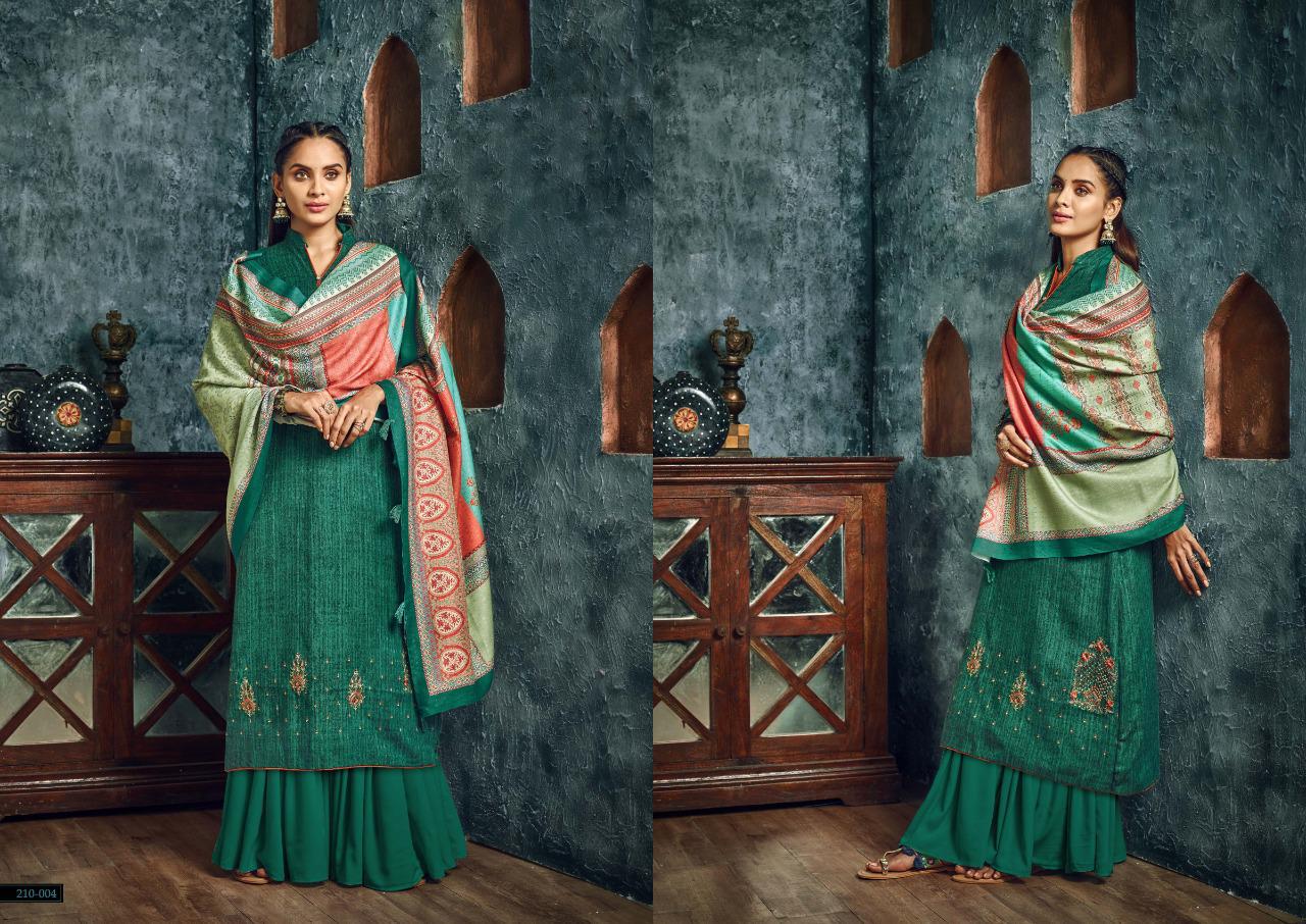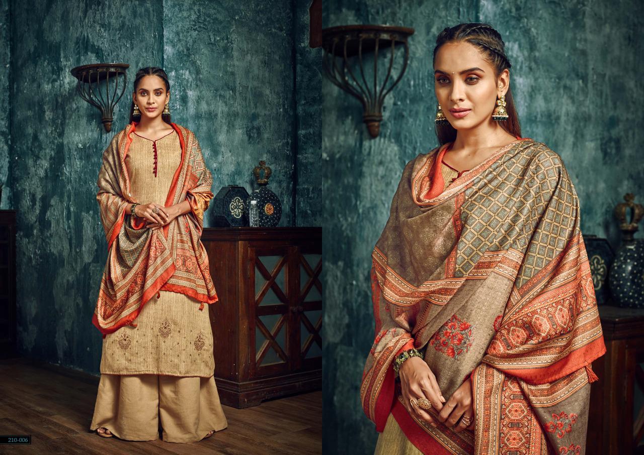 SARGAM PRINTS Presents ***YASMIN*** VOL-2 *?Fabric Details?* *Top:* PURE PASHMINA DESIGNER WORK Bottom :PASHMINA DYED *Dupatta:* PURE KASHMIRI WOOL DIGITAL PRINTED (BOX) *Designs:* 6 pcs *Rate:* ?895/- plus GST *HSN CODE:* 5407 Set to set. Delivery 2-3 days |