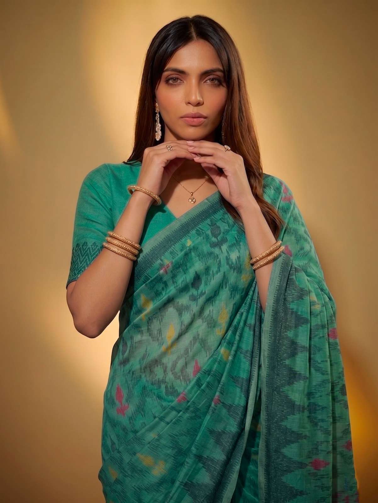Comfort meets style in this soft Poly Cotton printed saree—perfect for your everyday elegance. 🍂
