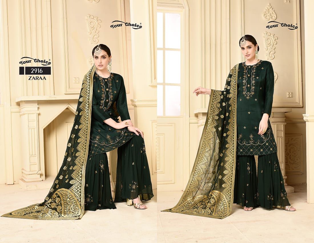 Buy Online Your Choice Zaraa 2914 Series Designer Pakistani Sarara Suit Catlog Wholesale Dealer And Supplier Surat 4 Pcs of Full Catalogue at Wholesale Price. Looking for Your Choice Zaraa 2914 Series Designer Pakistani Sarara Suit Catlog Wholesale Dealer And Supplier Surat Full Catalouge at Best Price? Buy Now Your Choice Zaraa 2914 Series Designer Pakistani Sarara Suit Catlog Wholesale Dealer And Supplier Surat at Wholesale Rate of Rs 6780 with Total 4 Pcs from authroized dealer and supplier of YOUR CHOICE Brand. Cost of Each piece is just only Rs 1695 which is very low and affordable price to resale the product in your retail store ,This is Surat based Wholesale Supplier & Dealer of YOUR CHOICE Brand. Click on Brand name to Know more about YOUR CHOICE Brand's products.Call or Whatsapp on 9898838984 for booking or enquiry