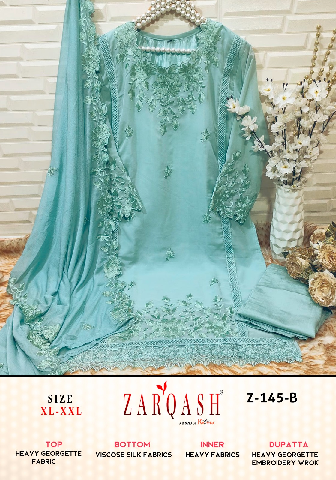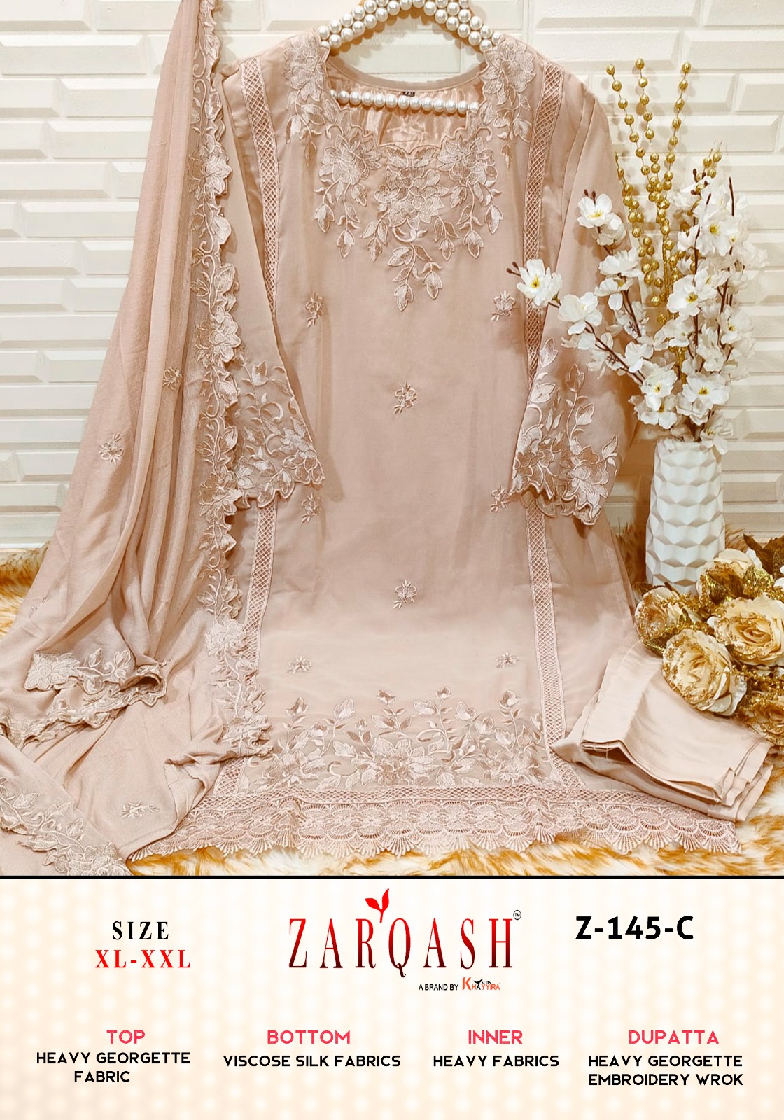 Buy Online Z 145 Zarqash Readymade Collection 4 Pcs of Full Catalogue at Wholesale Price. Looking for Z 145 Zarqash Readymade Collection Full Catalouge at Best Price? Buy Now Z 145 Zarqash Readymade Collection at Wholesale Rate of Rs 5196 with Total 4 Pcs from authroized dealer and supplier of Brand. Cost of Each piece is just only Rs 1299 which is very low and affordable price to resale the product in your retail store ,This is Surat based Wholesale Supplier & Dealer of Brand. Click on Brand name to Know more about Brand's products.Call or Whatsapp on 9898838984 for booking or enquiry