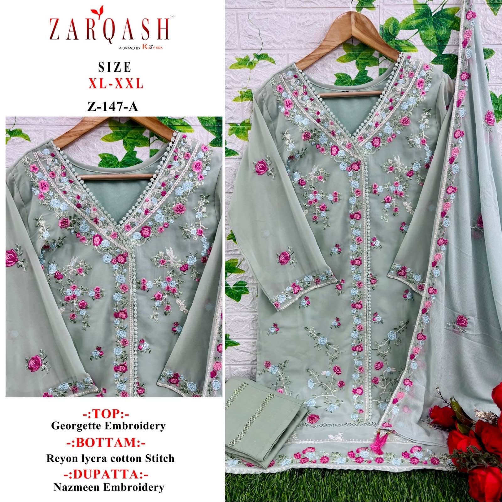 Buy Online Z 147 2 Colour Zarqash Readymade Georgette Collection 2 Pcs of Full Catalogue at Wholesale Price. Looking for Z 147 2 Colour Zarqash Readymade Georgette Collection Full Catalouge at Best Price? Buy Now Z 147 2 Colour Zarqash Readymade Georgette Collection at Wholesale Rate of Rs 2798 with Total 2 Pcs from authroized dealer and supplier of Brand. Cost of Each piece is just only Rs 1399 which is very low and affordable price to resale the product in your retail store ,This is Surat based Wholesale Supplier & Dealer of Brand. Click on Brand name to Know more about Brand's products.Call or Whatsapp on 9898838984 for booking or enquiry