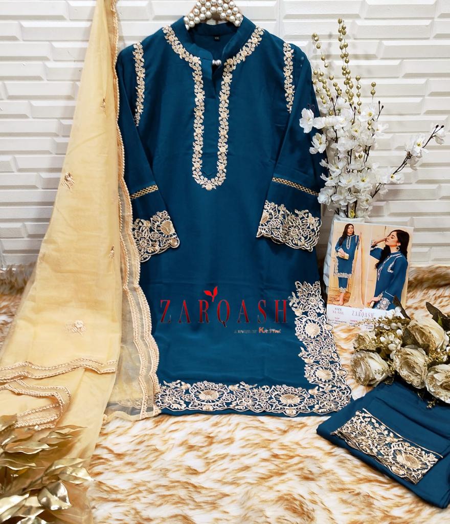 Buy Online Z 150 Zarqash Readymade Georgette Pakistani Collection 3 Pcs of Full Catalogue at Wholesale Price. Looking for Z 150 Zarqash Readymade Georgette Pakistani Collection Full Catalouge at Best Price? Buy Now Z 150 Zarqash Readymade Georgette Pakistani Collection at Wholesale Rate of Rs 3597 with Total 3 Pcs from authroized dealer and supplier of Brand. Cost of Each piece is just only Rs 1199 which is very low and affordable price to resale the product in your retail store ,This is Surat based Wholesale Supplier & Dealer of Brand. Click on Brand name to Know more about Brand's products.Call or Whatsapp on 9898838984 for booking or enquiry