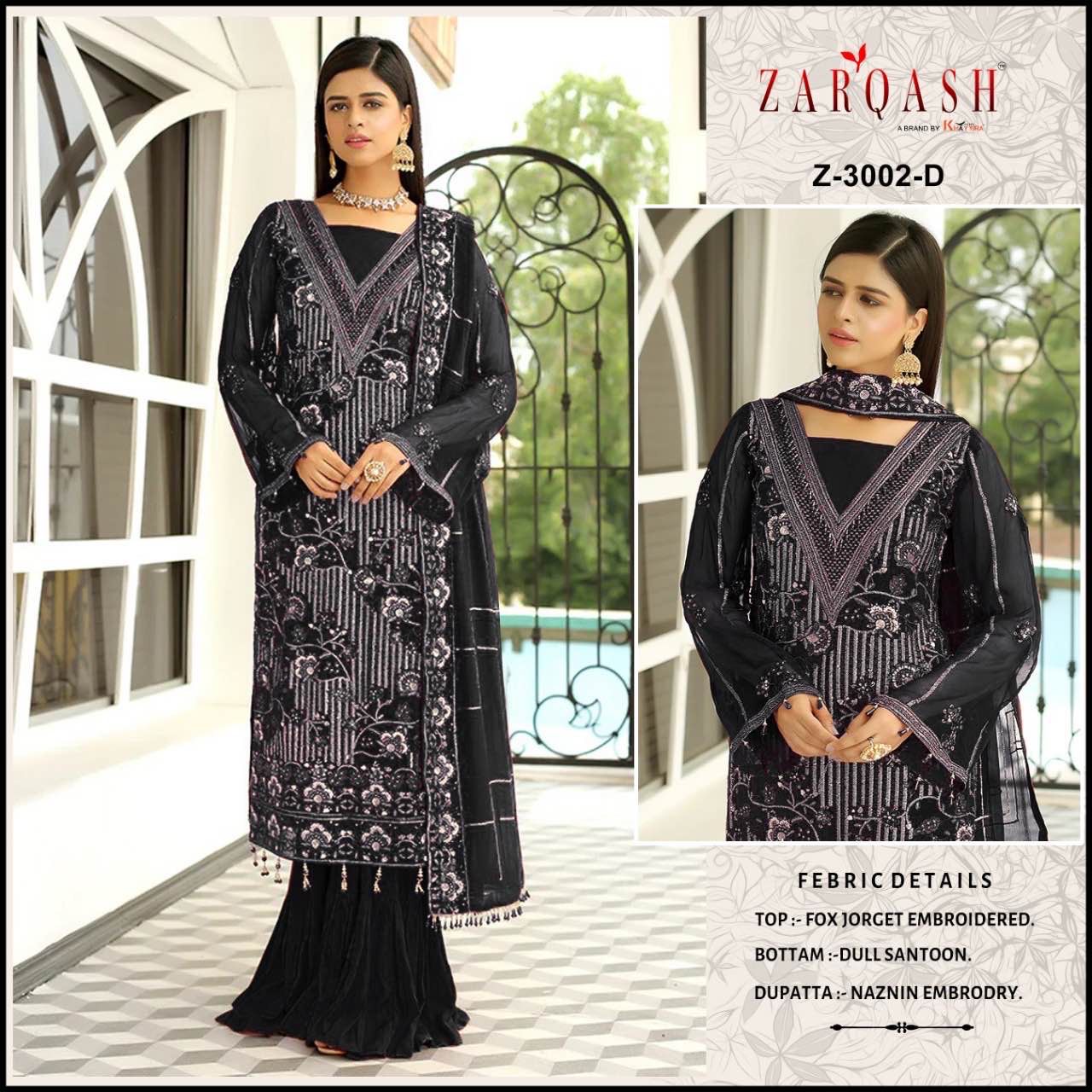 Buy Online Z 3002 By Zarqash 4 Pcs of Full Catalogue at Wholesale Price. Looking for Z 3002 By Zarqash Full Catalouge at Best Price? Buy Now Z 3002 By Zarqash at Wholesale Rate of Rs 4600 with Total 4 Pcs from authroized dealer and supplier of Brand. Cost of Each piece is just only Rs 1150 which is very low and affordable price to resale the product in your retail store ,This is Surat based Wholesale Supplier & Dealer of Brand. Click on Brand name to Know more about Brand's products.Call or Whatsapp on 9898838984 for booking or enquiry