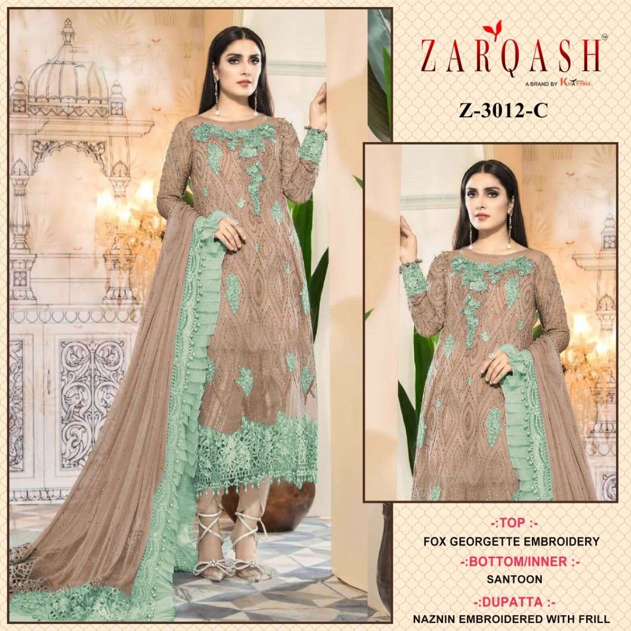 ZARQASH ® D. NO :- Z-3012 (B,C,D) Fabric Details Top :- Fox Georgette Embroidery Rate:-1100/- + GST READY TO SHIP🚚🚚🚚 |