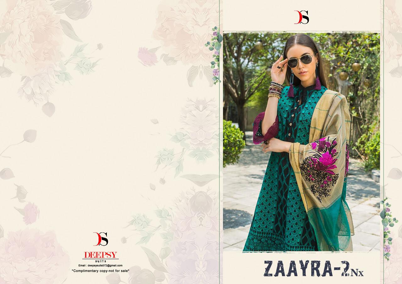 Buy Online Zaayra 2 Nx By Deepsy Pakistani Suits Wholesale Supplier Gujarat 5 Pcs of Full Catalogue at Wholesale Price. Looking for Zaayra 2 Nx By Deepsy Pakistani Suits Wholesale Supplier Gujarat Full Catalouge at Best Price? Buy Now Zaayra 2 Nx By Deepsy Pakistani Suits Wholesale Supplier Gujarat at Wholesale Rate of Rs 4625 with Total 5 Pcs from authroized dealer and supplier of DEEPSY Brand. Cost of Each piece is just only Rs 925 which is very low and affordable price to resale the product in your retail store ,This is Surat based Wholesale Supplier & Dealer of DEEPSY Brand. Click on Brand name to Know more about DEEPSY Brand's products.Call or Whatsapp on 9898838984 for booking or enquiry