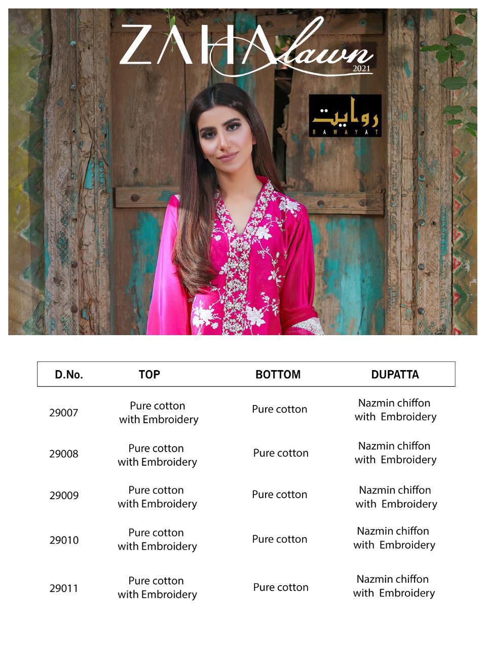 Zaha Lawn Collection 2021 By Rawayat Dealer And Exporter Surat Gujarat