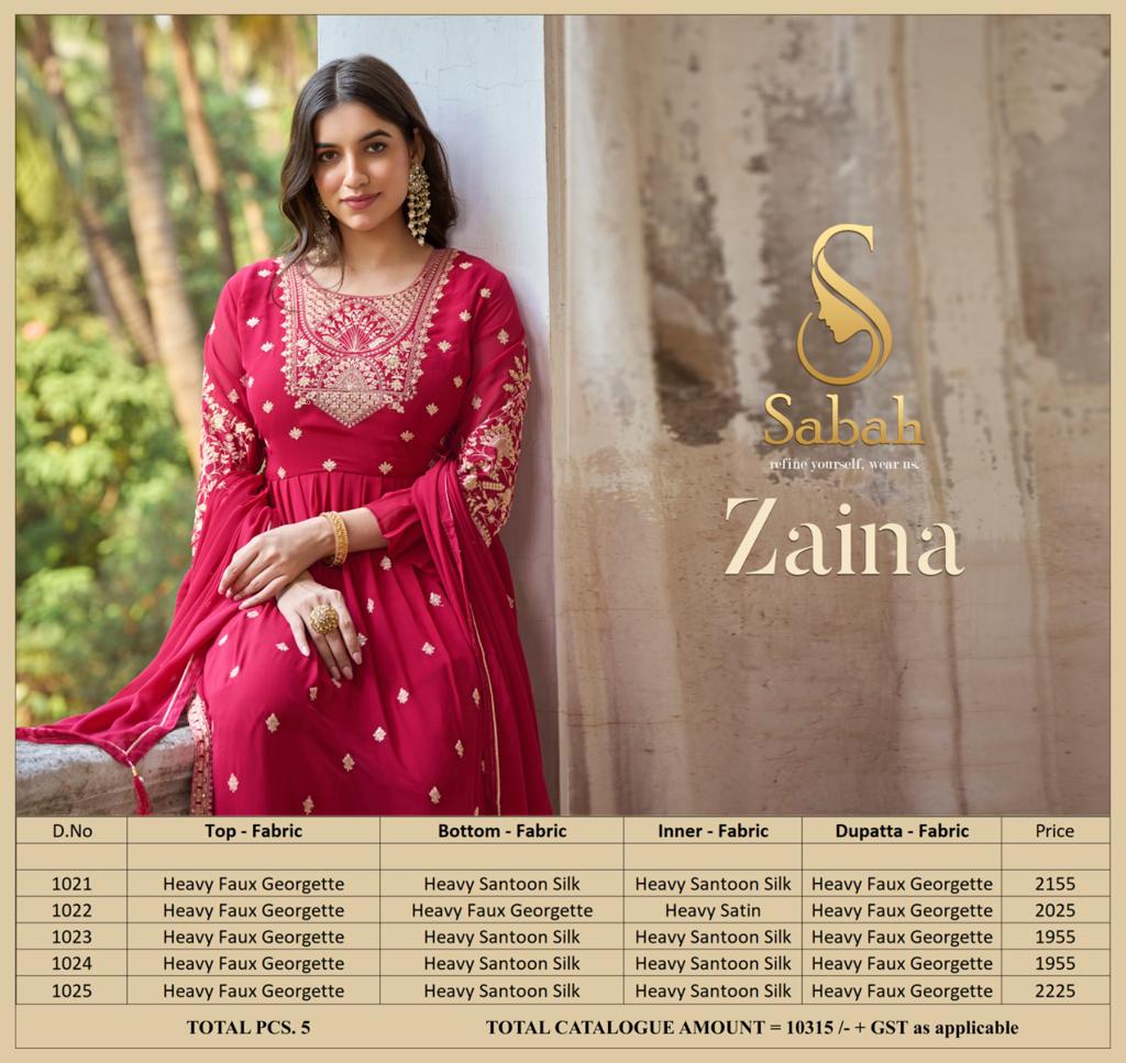 Buy Online Zaina By Sabah 5 Pcs of Full Catalogue at Wholesale Price. Looking for Zaina By Sabah Full Catalouge at Best Price? Buy Now Zaina By Sabah at Wholesale Rate of Rs 0 with Total 5 Pcs from authroized dealer and supplier of Brand. Cost of Each piece is just only Rs 0 which is very low and affordable price to resale the product in your retail store ,This is Surat based Wholesale Supplier & Dealer of Brand. Click on Brand name to Know more about Brand's products.Call or Whatsapp on 9898838984 for booking or enquiry