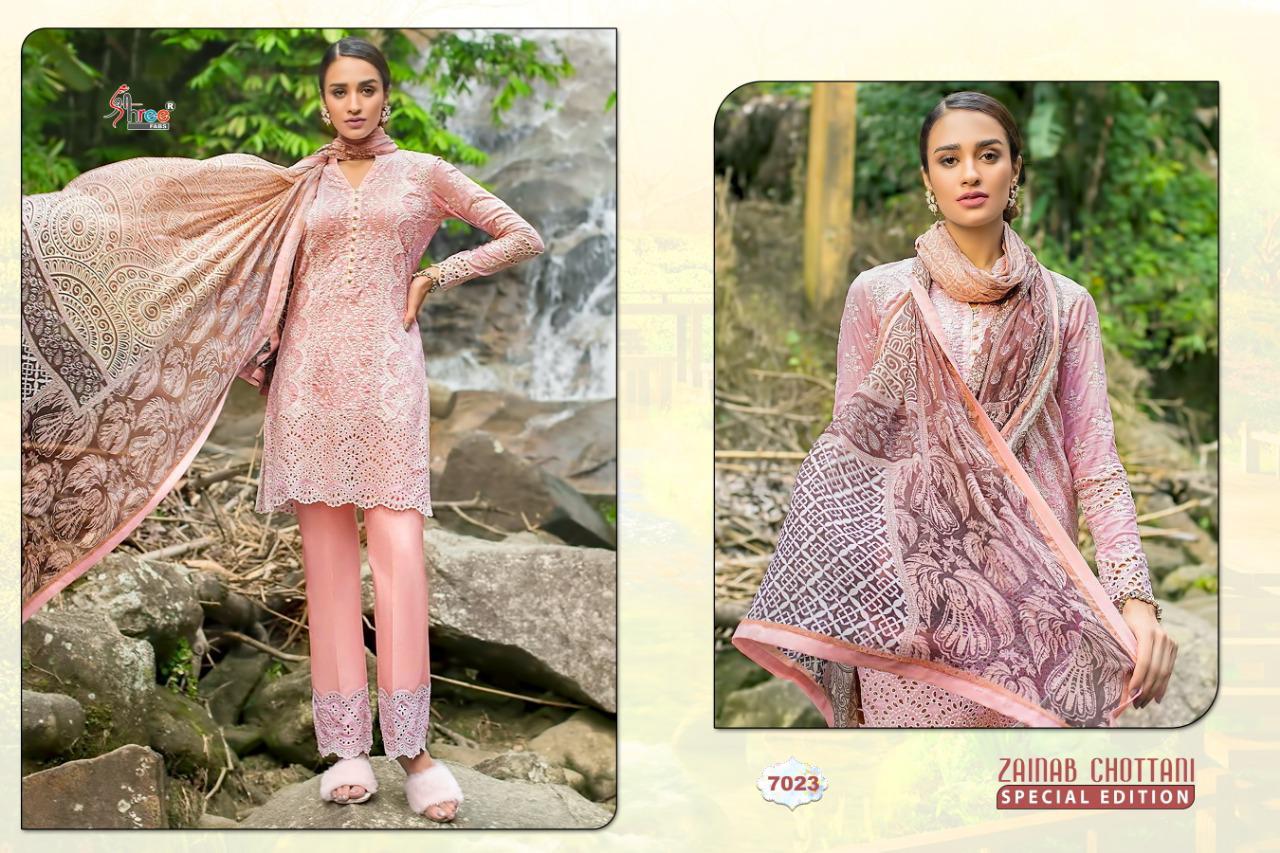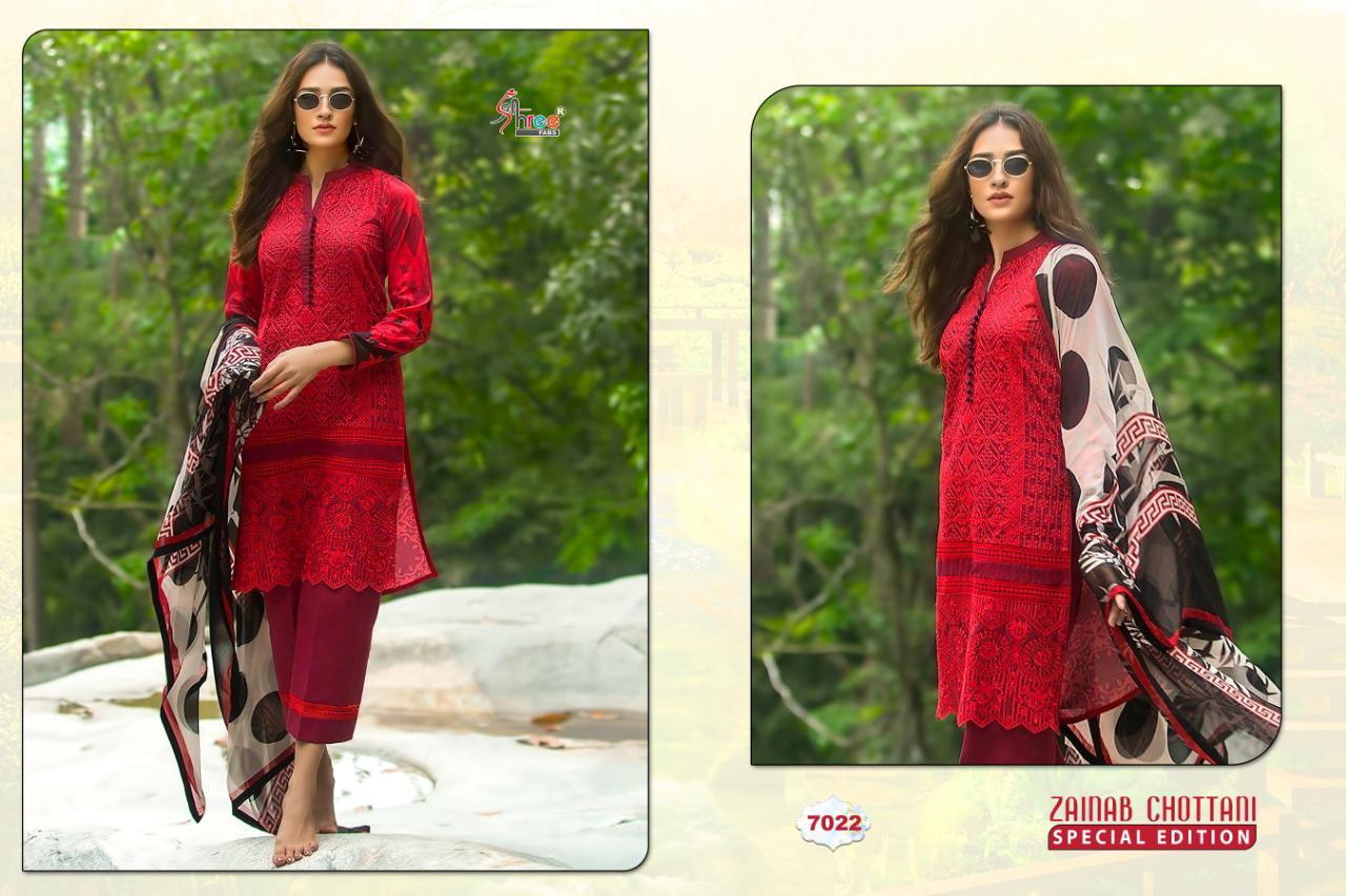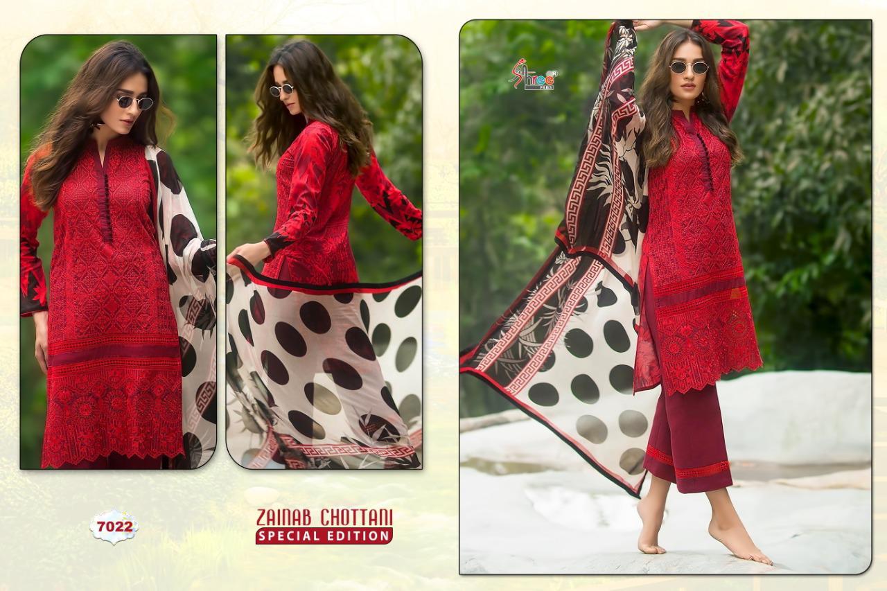 ZAINAB CHOTTANI SPECIAL EDITION TOP PURE COTTON WITH EXCLUSIVE CHIKANKARI EMBRODERY BOTTOM DYED SEMILAWN DUPPTA SIFFON PRINTED DES 4 RATE 851 +gst SHREE FABS SURAT |