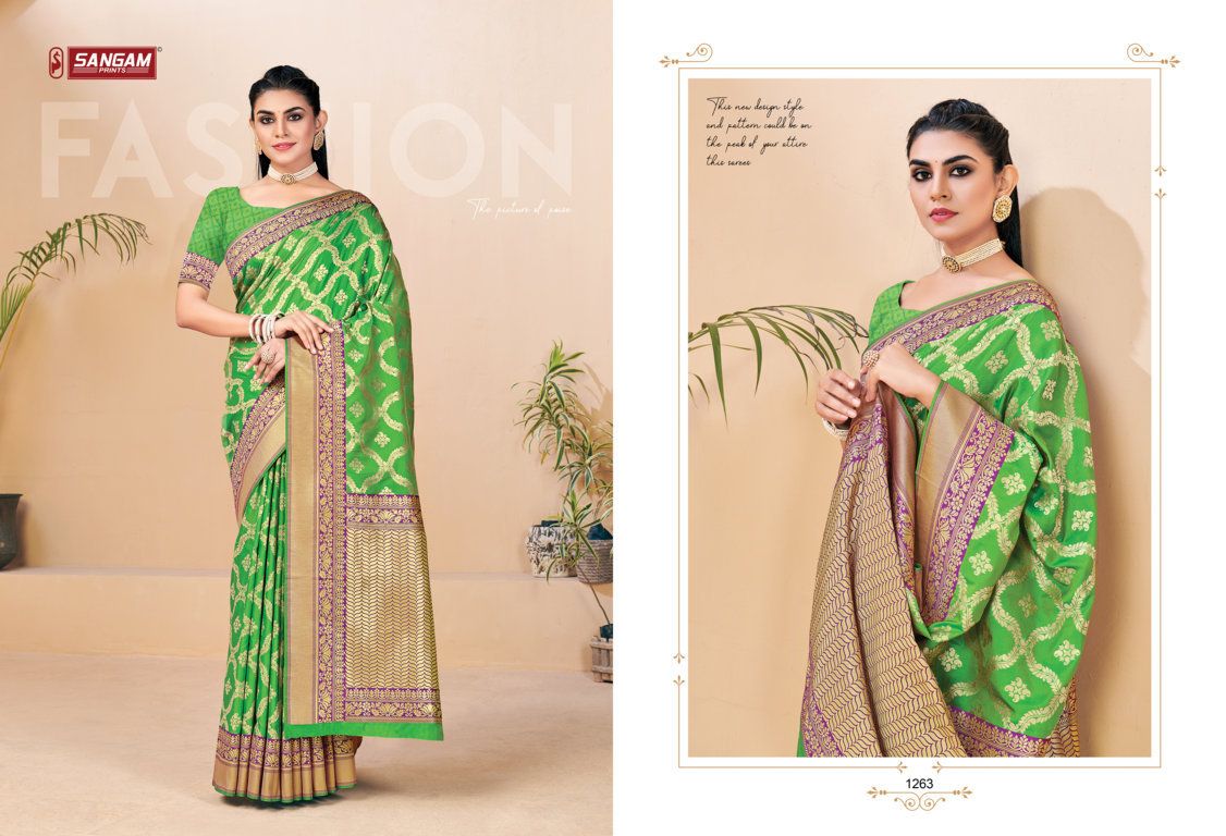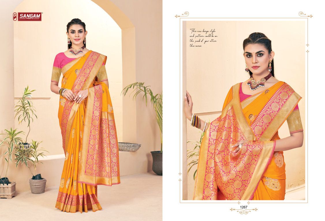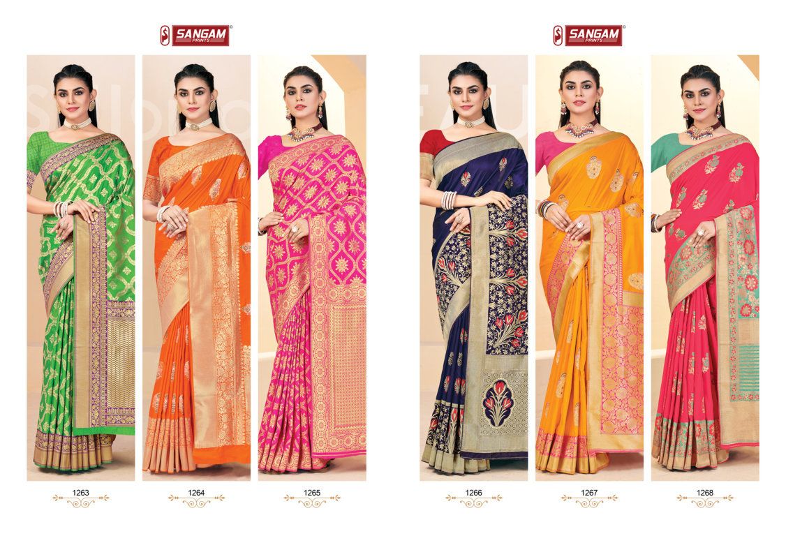 Buy Online Zamkudi Silk By Sangam Prints Single And Set Stockiest And Supplier From Surat 6 Pcs of Full Catalogue at Wholesale Price. Looking for Zamkudi Silk By Sangam Prints Single And Set Stockiest And Supplier From Surat Full Catalouge at Best Price? Buy Now Zamkudi Silk By Sangam Prints Single And Set Stockiest And Supplier From Surat at Wholesale Rate of Rs 11160 with Total 6 Pcs from authroized dealer and supplier of SANGAM Brand. Cost of Each piece is just only Rs 1860 which is very low and affordable price to resale the product in your retail store ,This is Surat based Wholesale Supplier & Dealer of SANGAM Brand. Click on Brand name to Know more about SANGAM Brand's products.Call or Whatsapp on 9898838984 for booking or enquiry